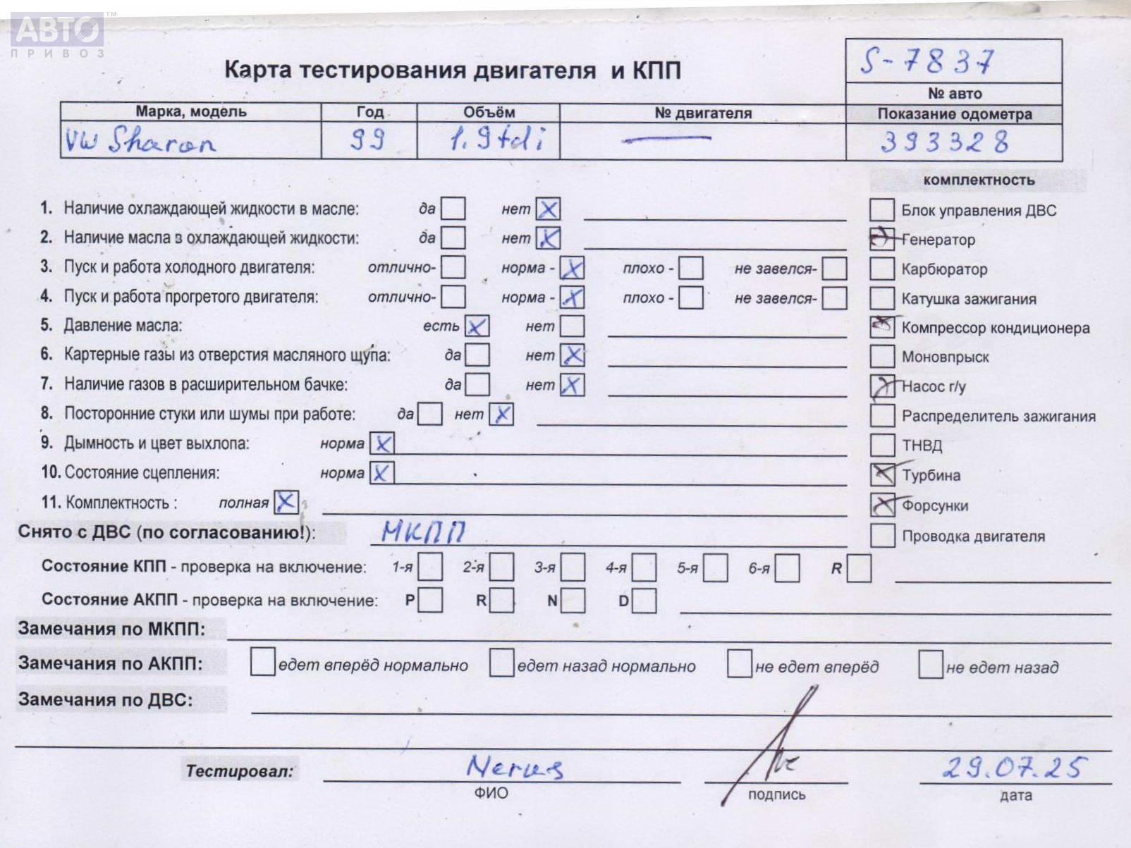 | Марка / Модель / Год: | Volkswagen Sharan (1995-2000) 1999 |