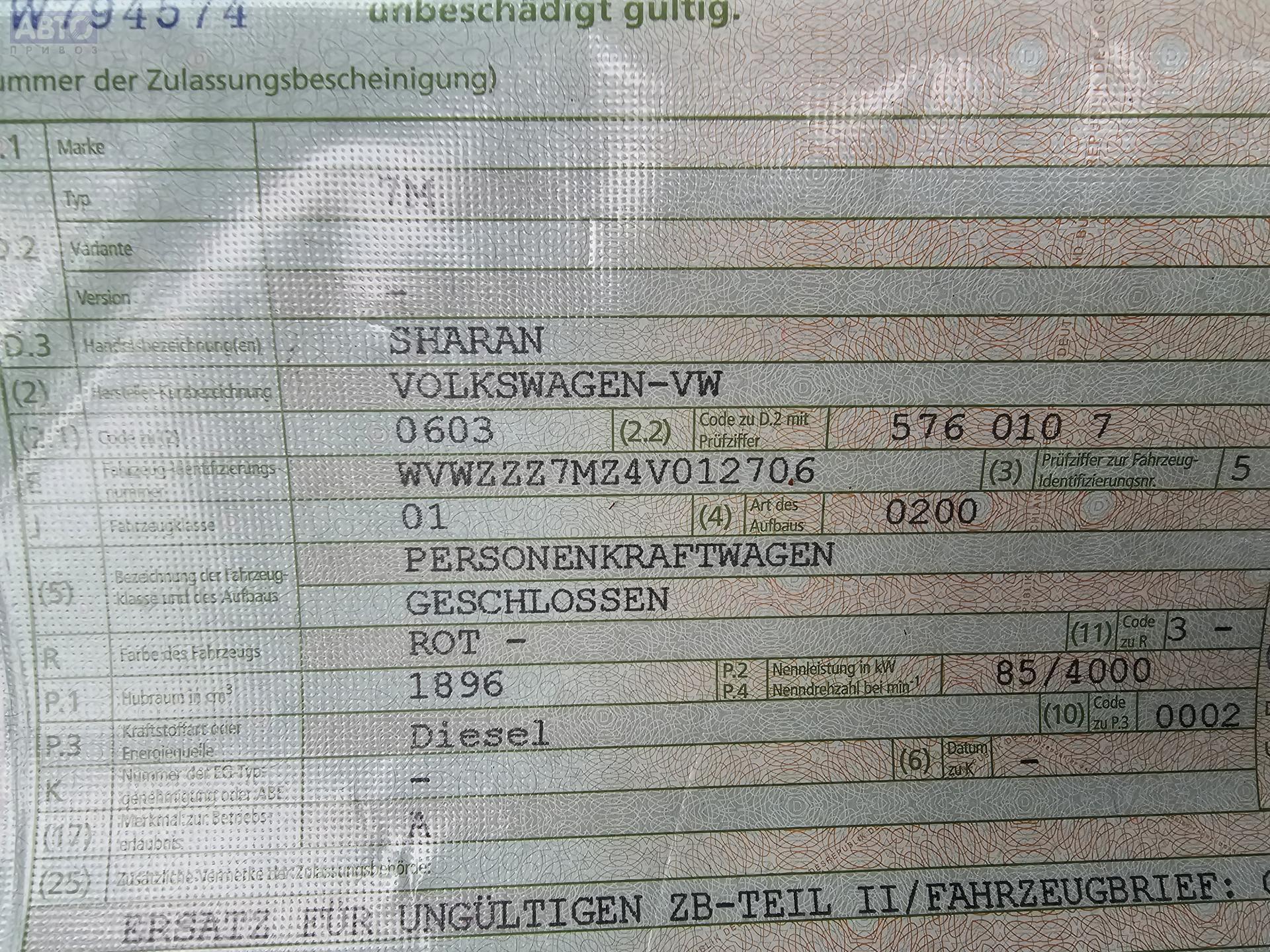| Марка / Модель / Год: | Volkswagen Sharan (2000-2010) 2003 |