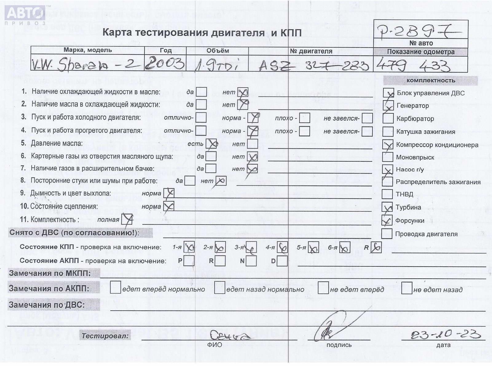 | Марка / Модель / Год: | Volkswagen Sharan (2000-2010) 2003 |