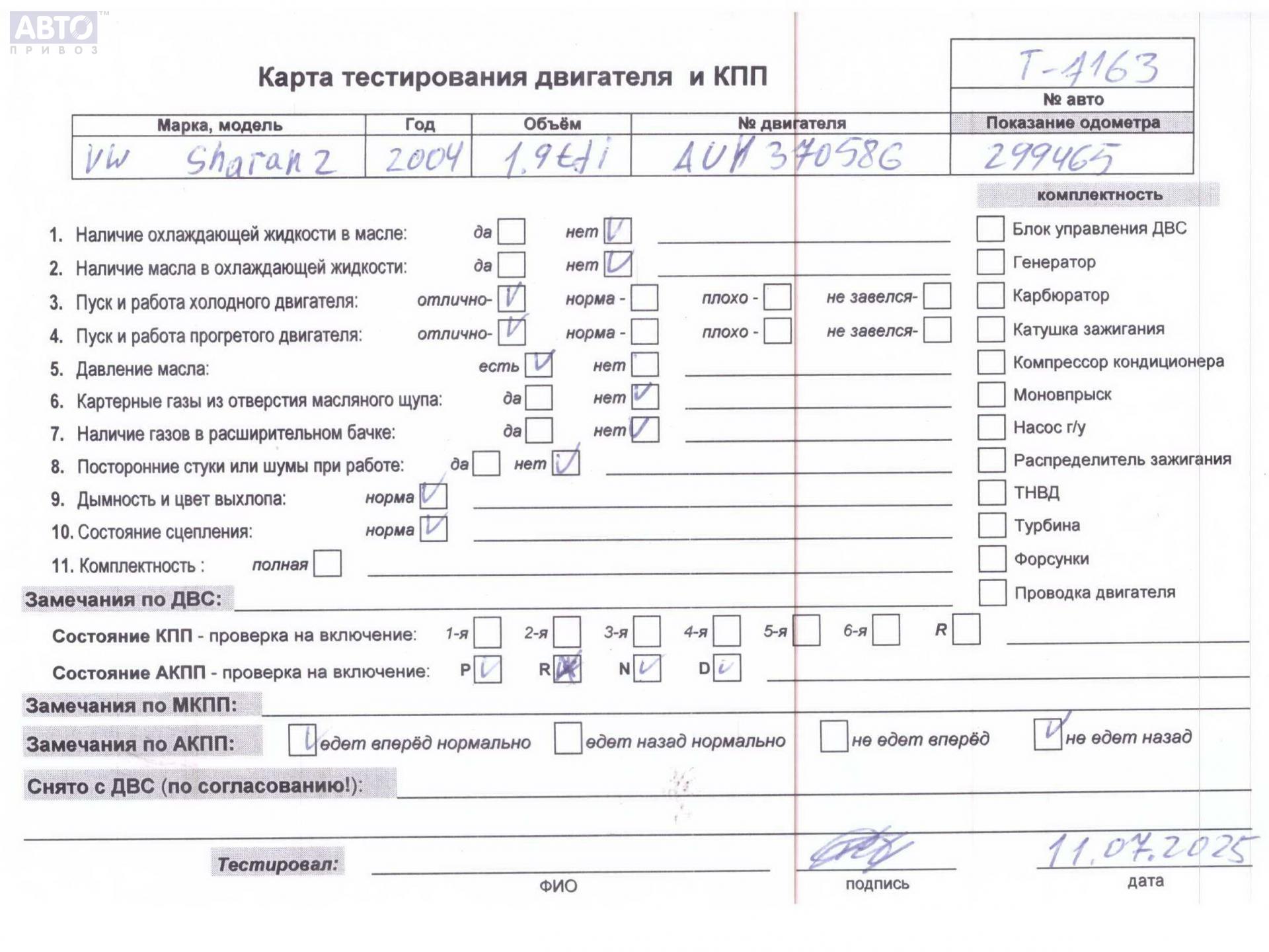 | Марка / Модель / Год: | Volkswagen Sharan (2000-2010) 2004 |