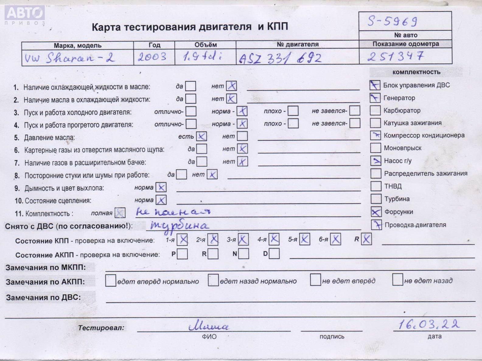 | Марка / Модель / Год: | Volkswagen Sharan (2000-2010) 2003 |
