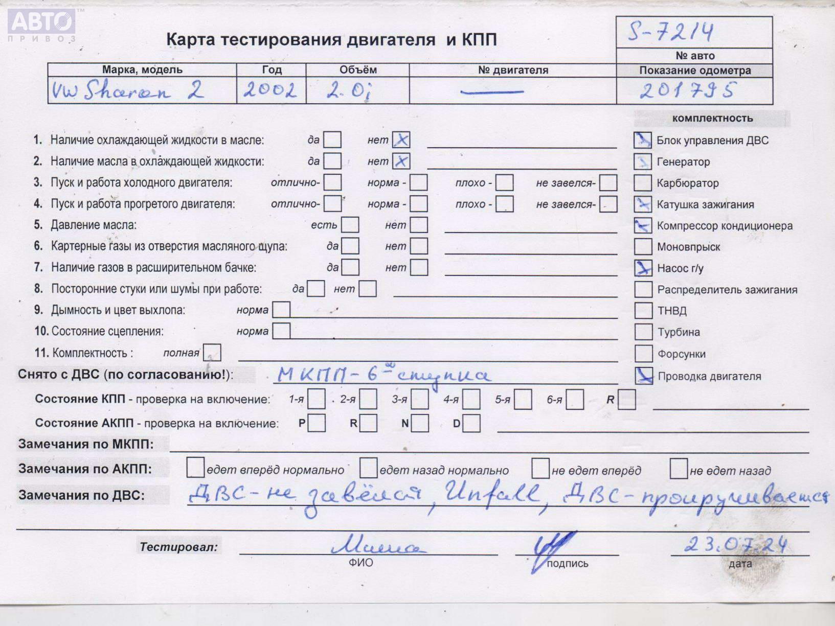 | Марка / Модель / Год: | Volkswagen Sharan (2000-2010) 2002 |