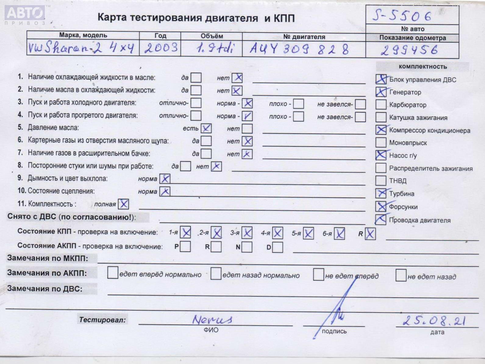 | Марка / Модель / Год: | Volkswagen Sharan (2000-2010) 2003 |