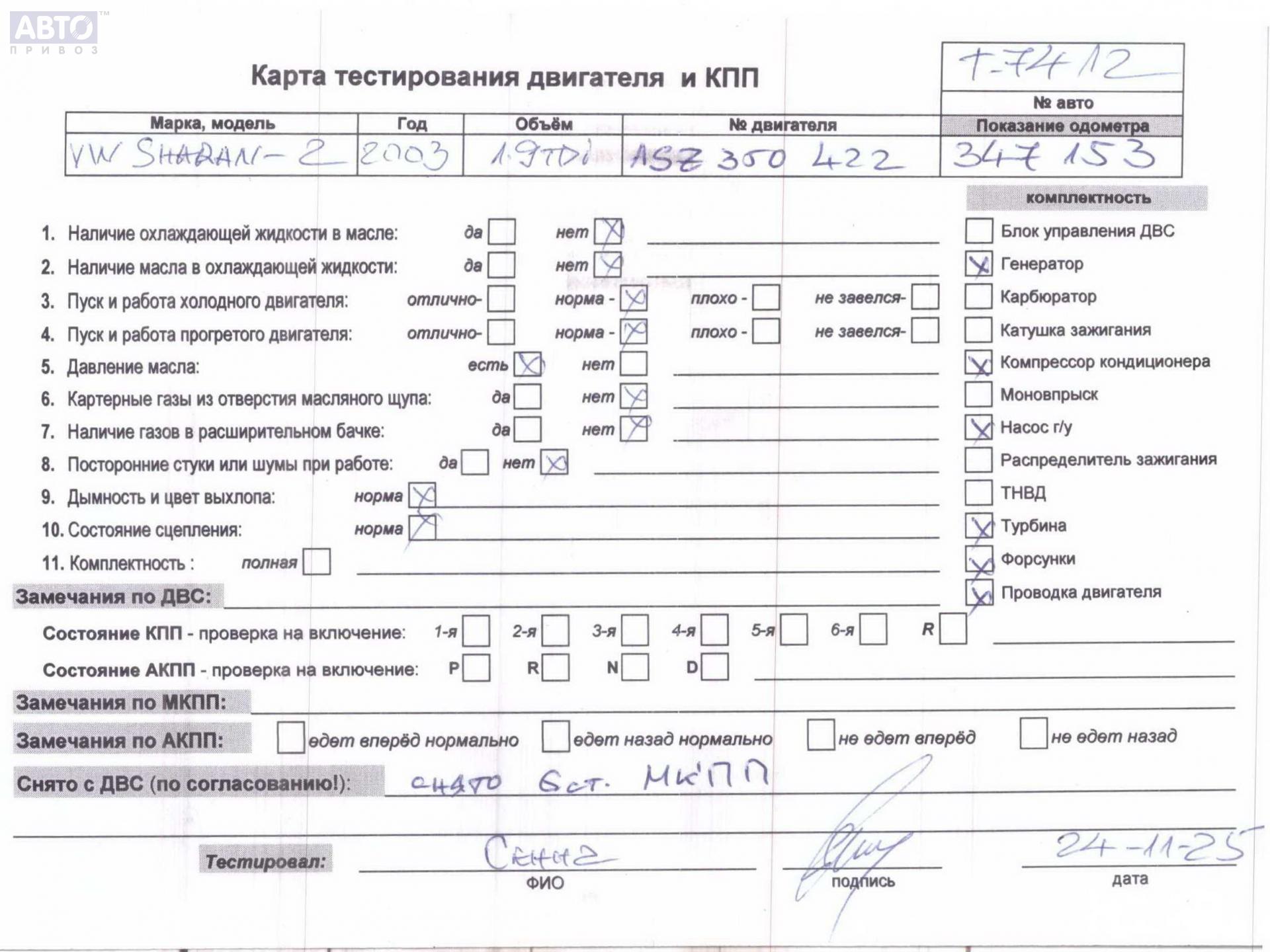 | Марка / Модель / Год: | Volkswagen Sharan (2000-2010) 2003 |