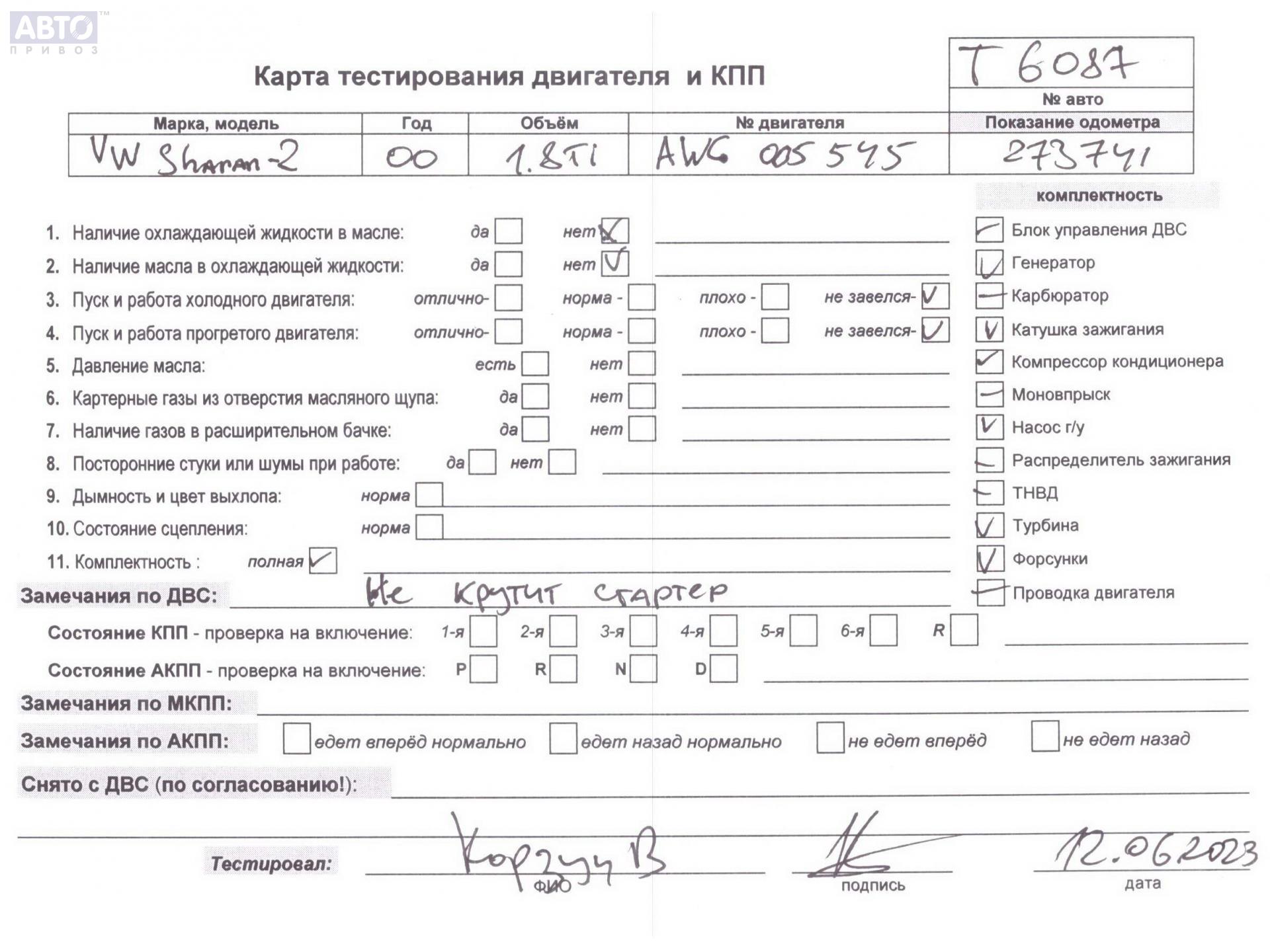 | Автомобиль / VIN: | T6087 WVWZZZ7MZ1V044422 |