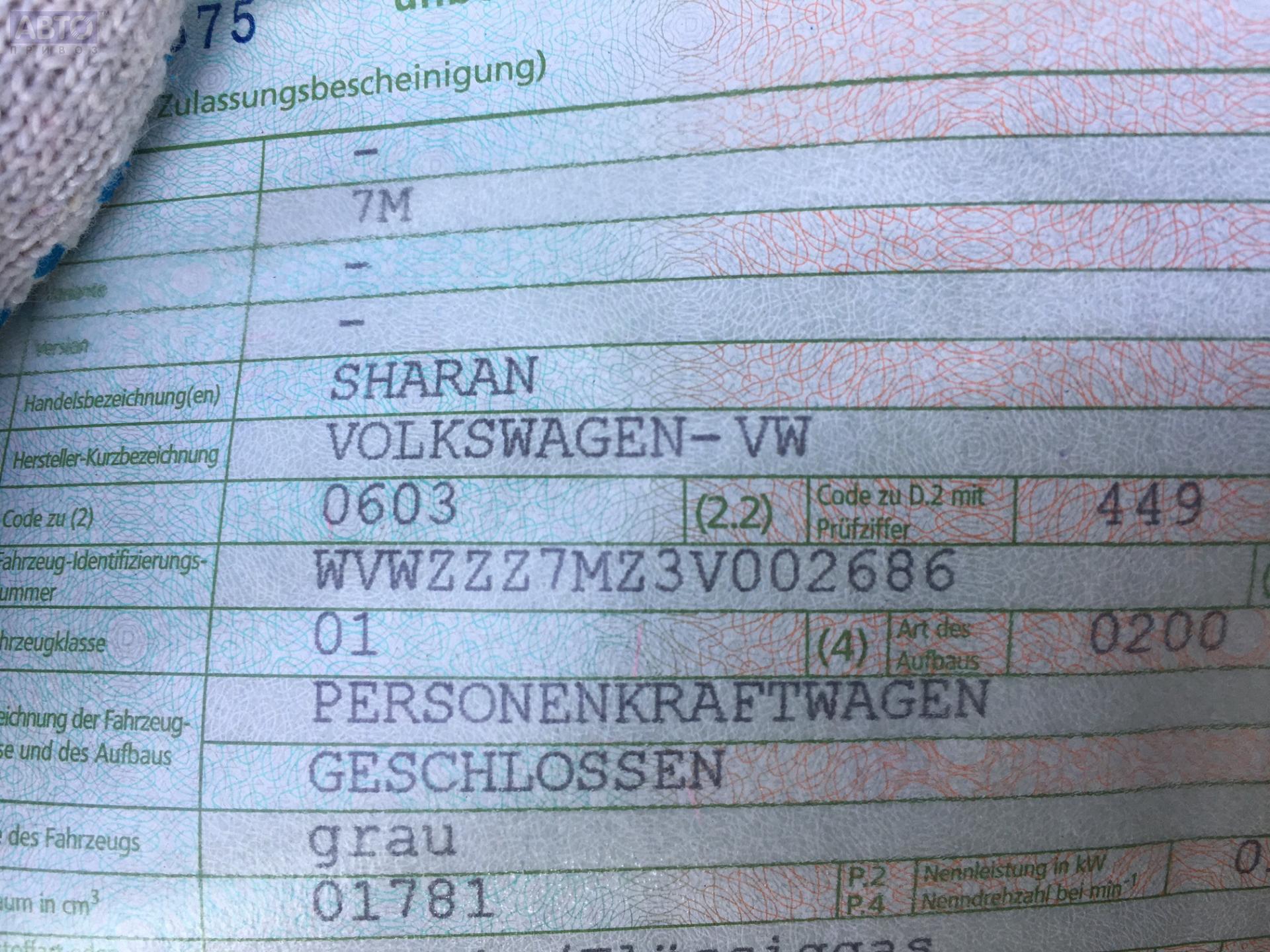 | Марка / Модель / Год: | Volkswagen Sharan (2000-2010) 2002 |
