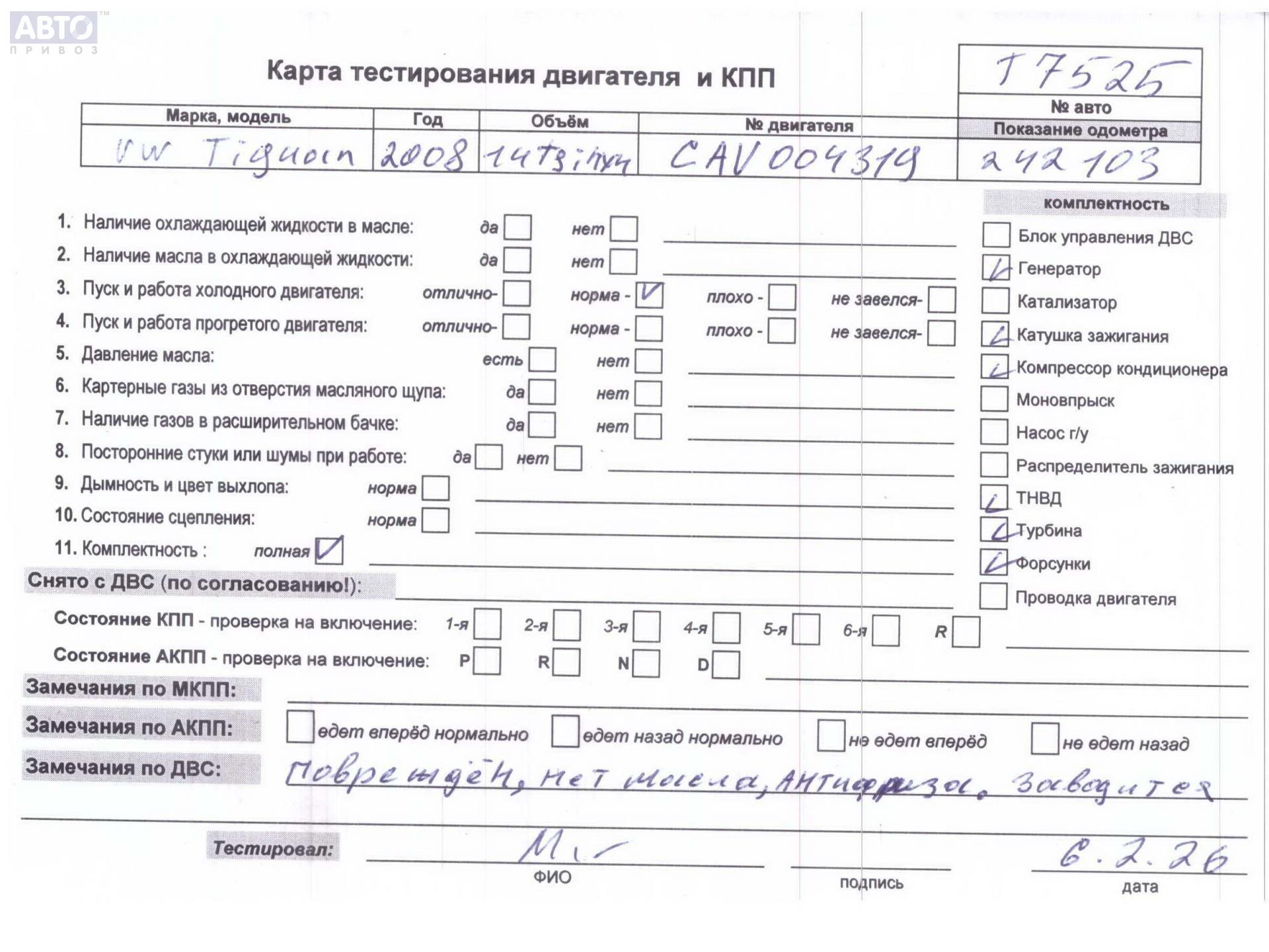 | Марка / Модель / Год: | Volkswagen Tiguan 2008 |
