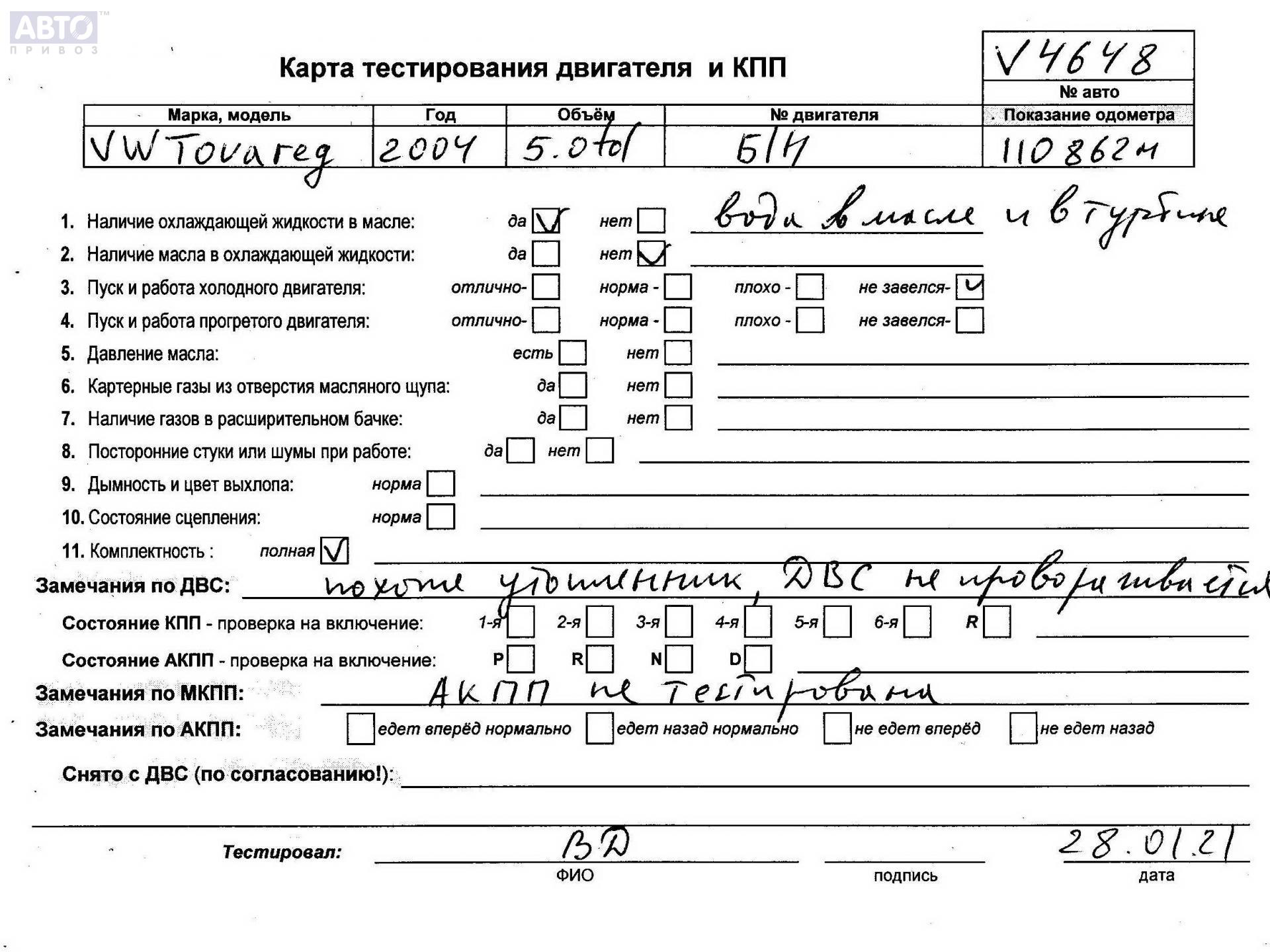 | Автомобиль / VIN: | V4648 WVGZZZ7LZ4D014302 |