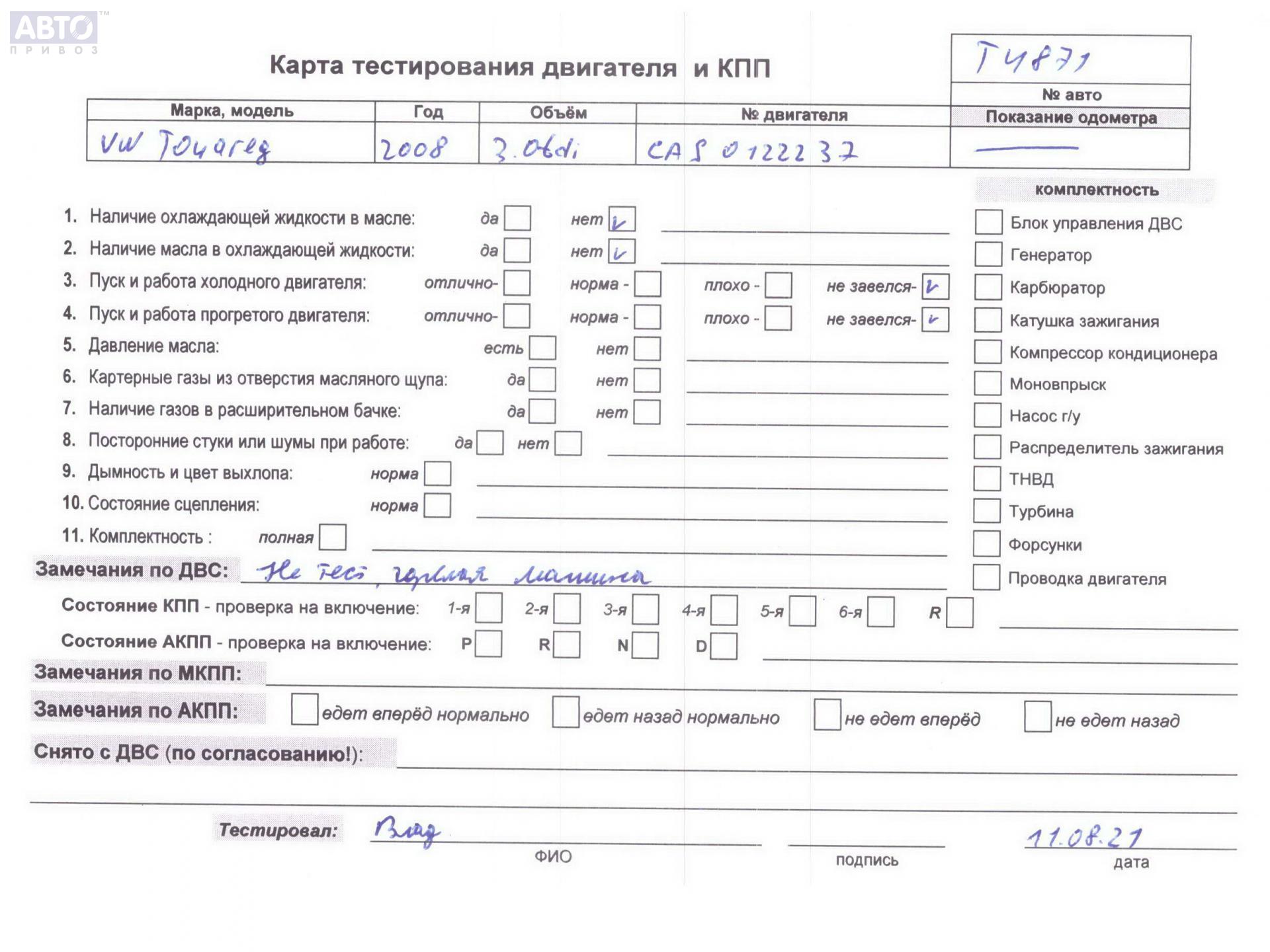 | Марка / Модель / Год: | Volkswagen Touareg 2008 |