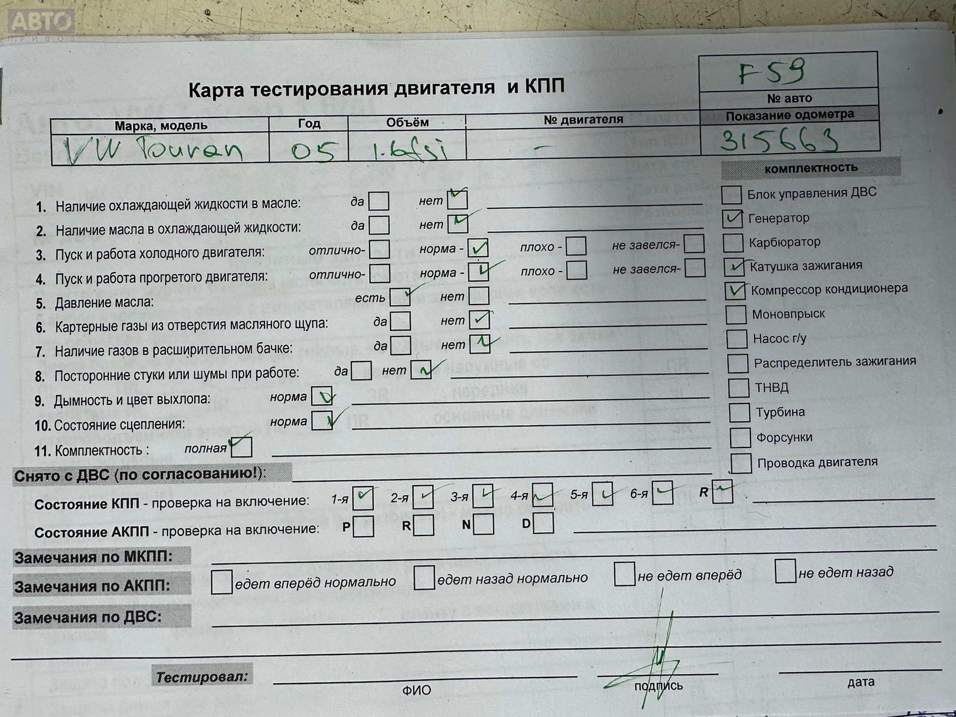 | Марка / Модель / Год: | Volkswagen Touran 2006 |