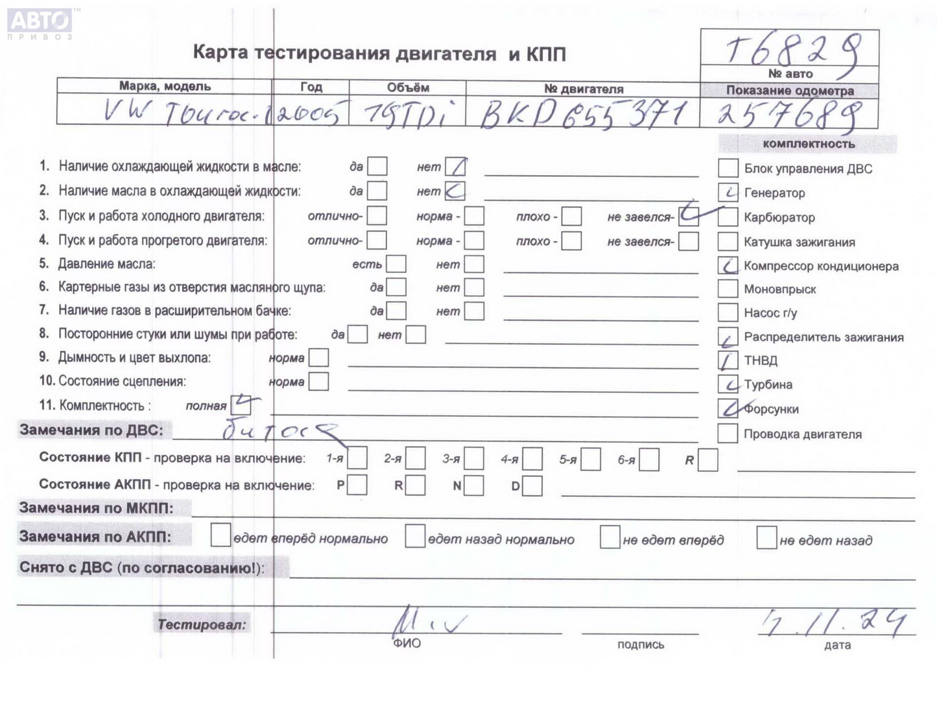| Автомобиль / VIN: | T6829 WVGZZZ1TZ5W191009 |