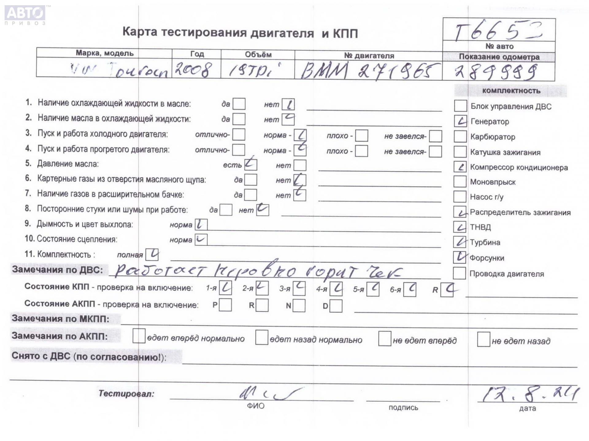 | Марка / Модель / Год: | Volkswagen Touran 2009 |