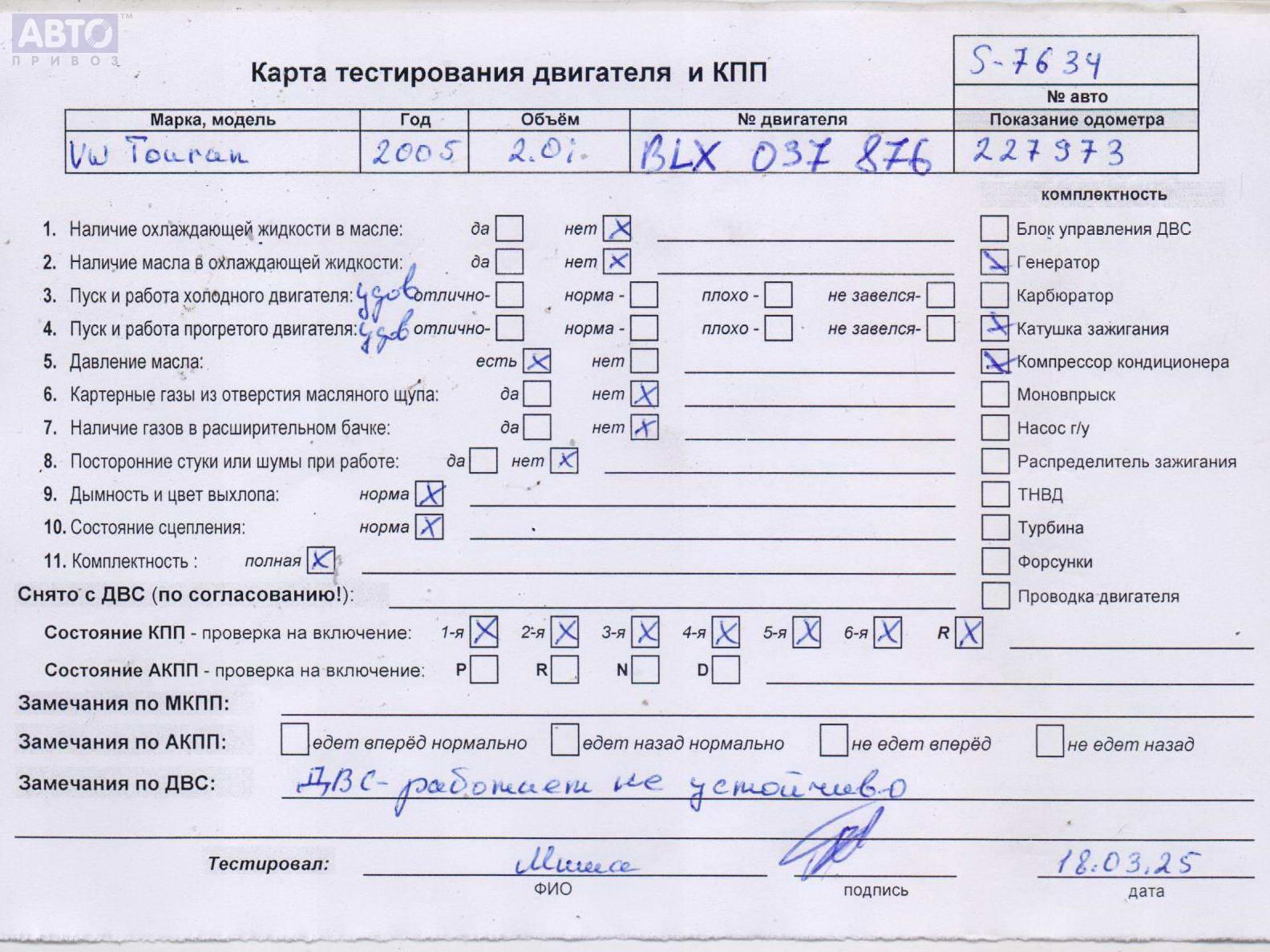 | Марка / Модель / Год: | Volkswagen Touran 2005 |
