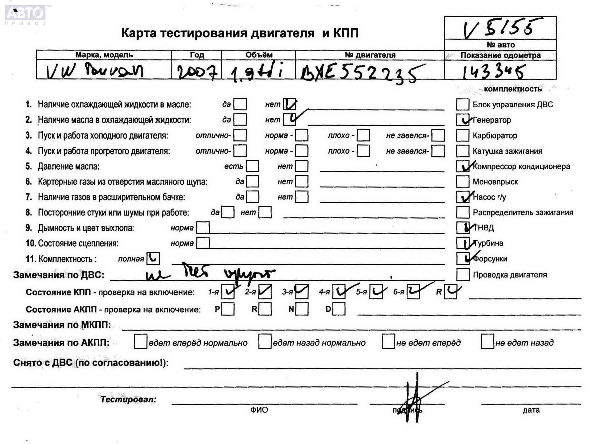 | Марка / Модель / Год: | Volkswagen Touran 2007 |