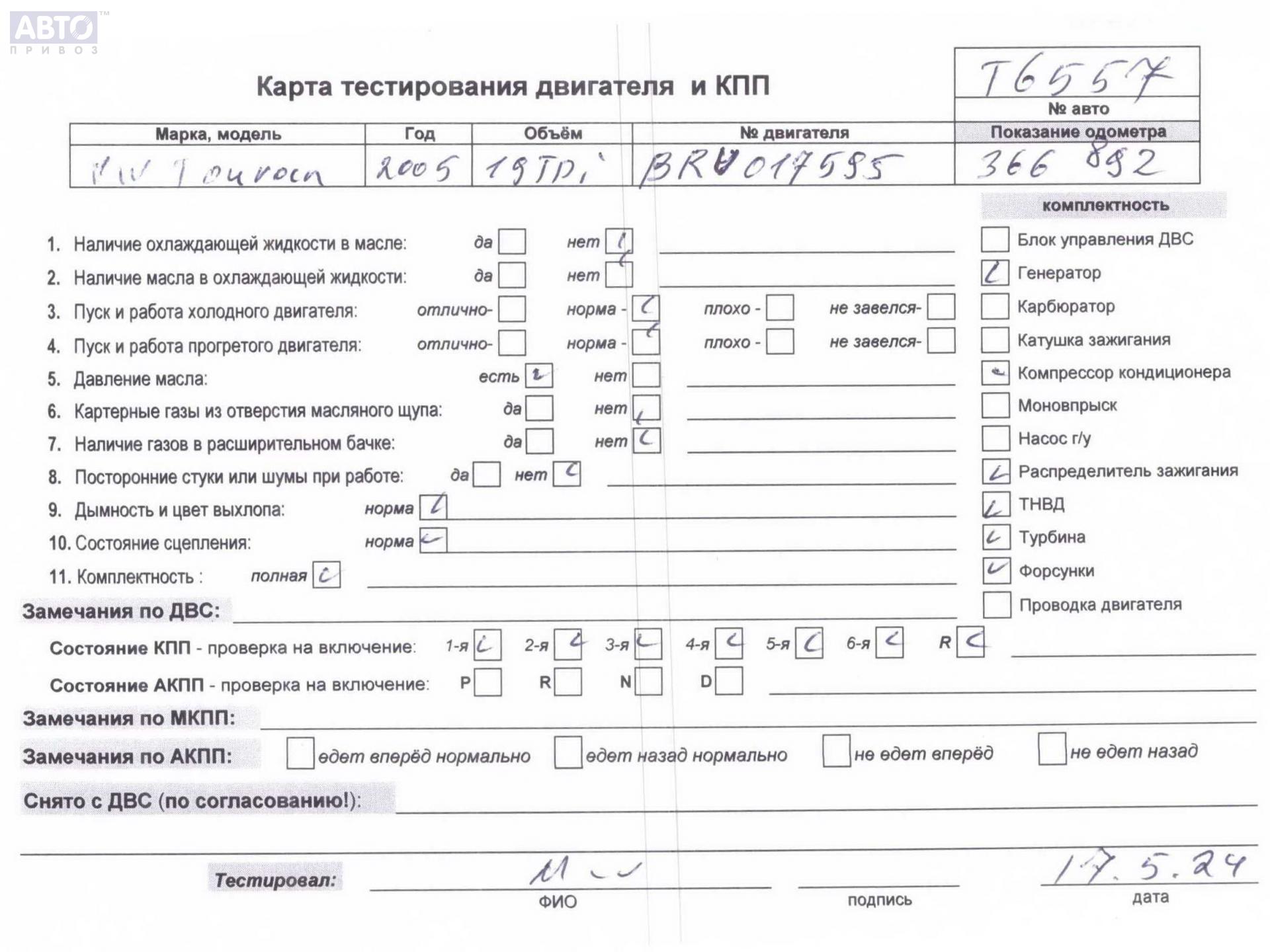 | Марка / Модель / Год: | Volkswagen Touran 2005 |