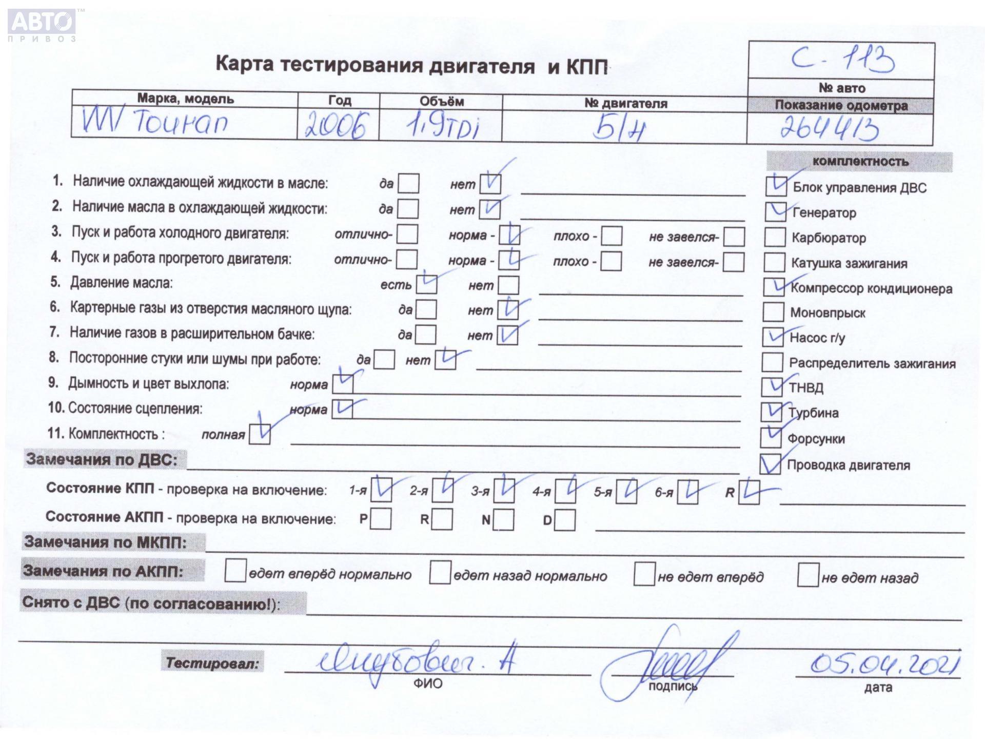 | Марка / Модель / Год: | Volkswagen Touran 2006 |