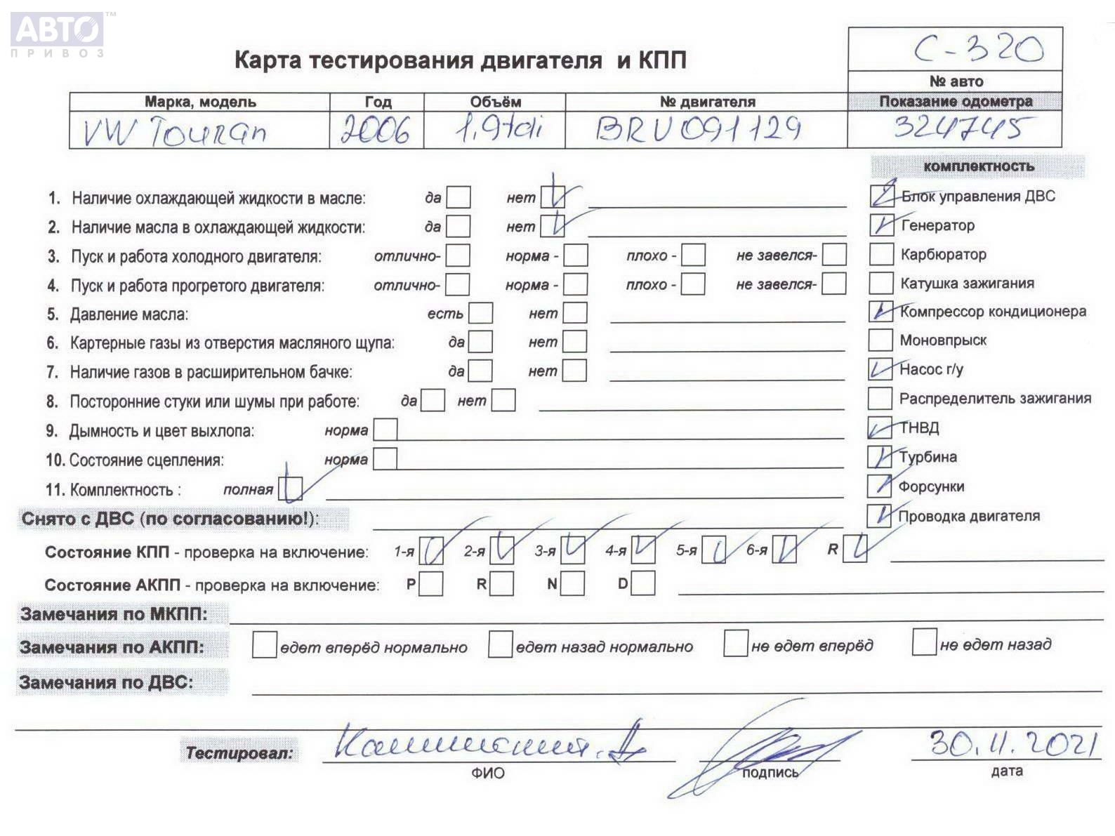 | Марка / Модель / Год: | Volkswagen Touran 2006 |