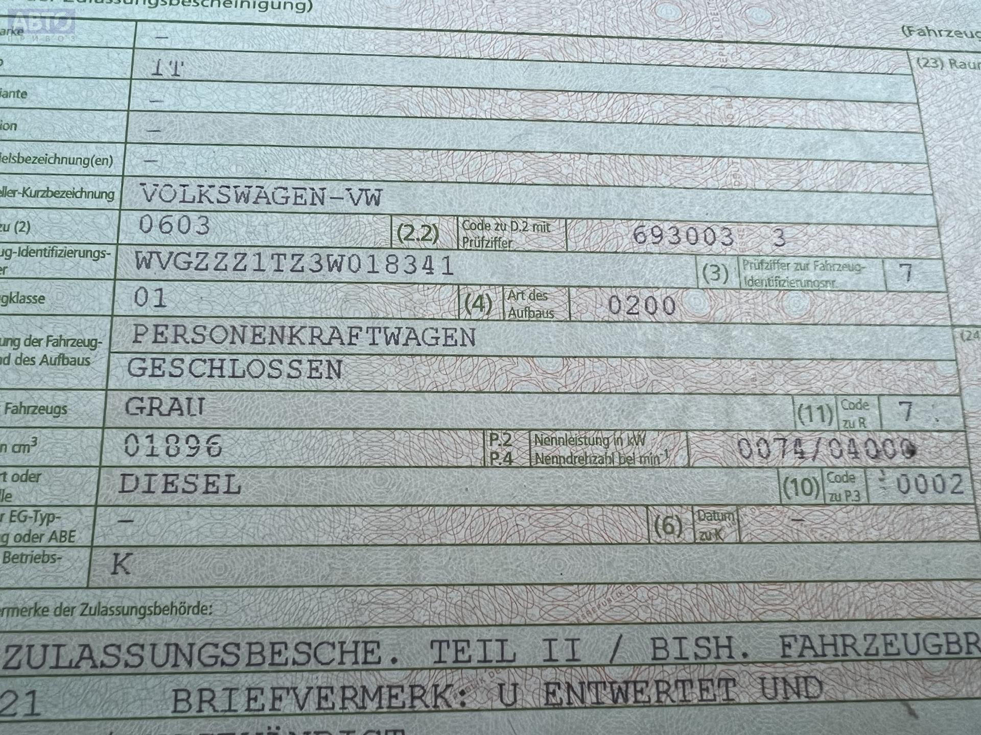 | Автомобиль / VIN: | T5785 WVGZZZ1TZ3W018341 |