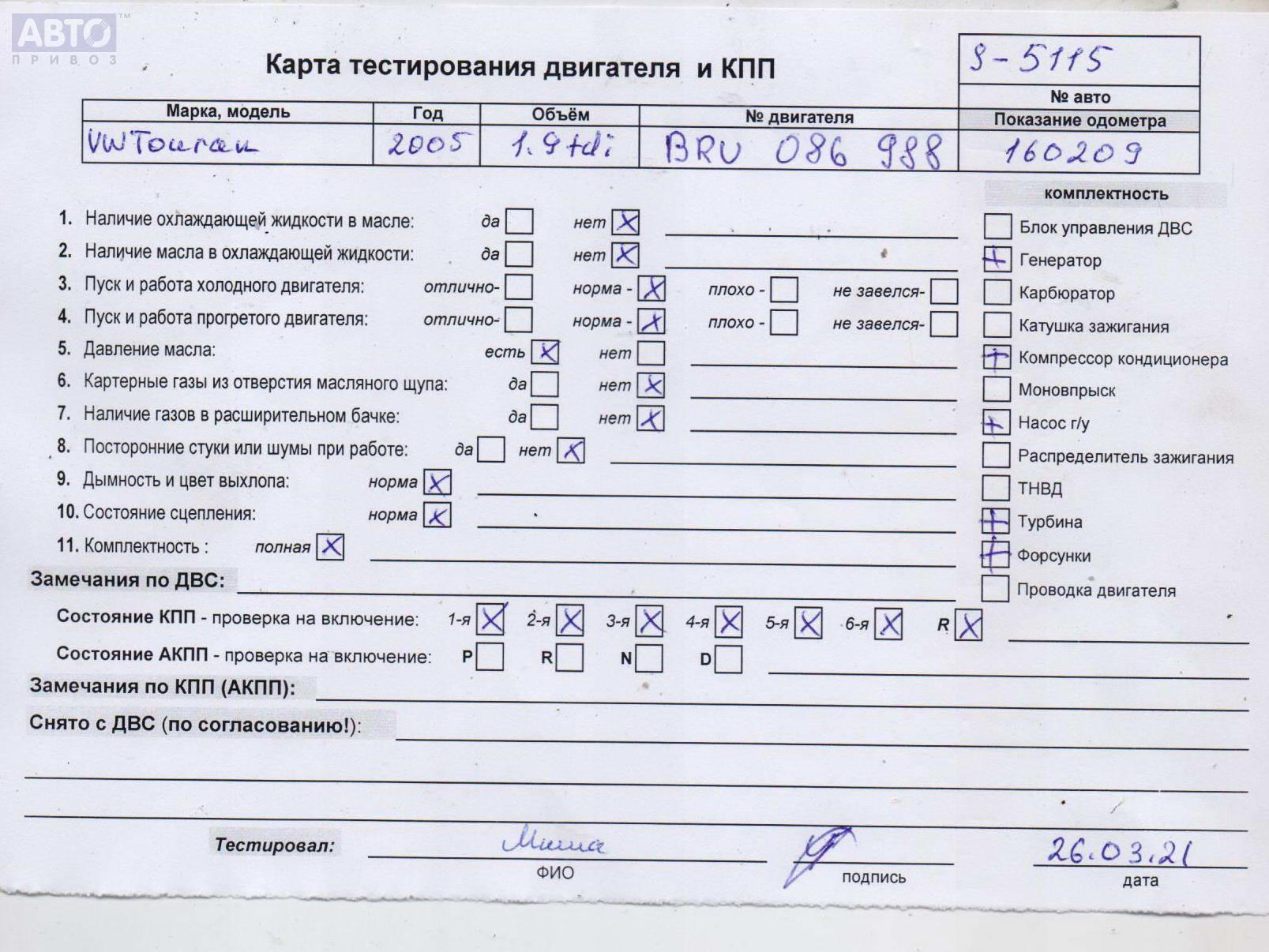 | Марка / Модель / Год: | Volkswagen Touran 2005 |