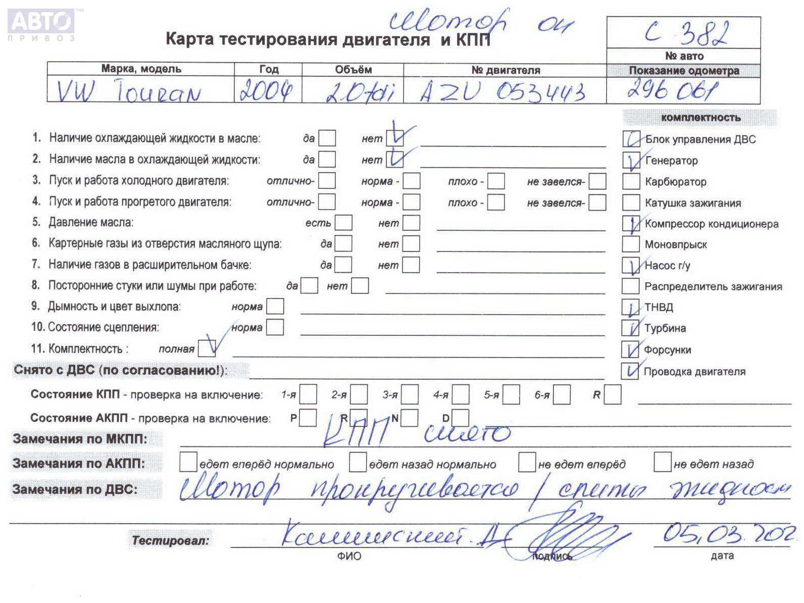 | Марка / Модель / Год: | Volkswagen Touran 2004 |