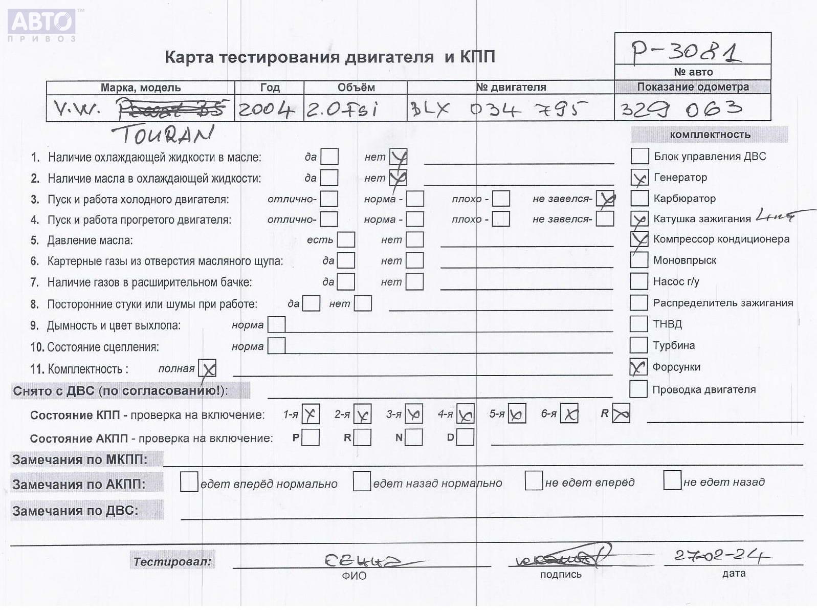| Марка / Модель / Год: | Volkswagen Touran 2004 |