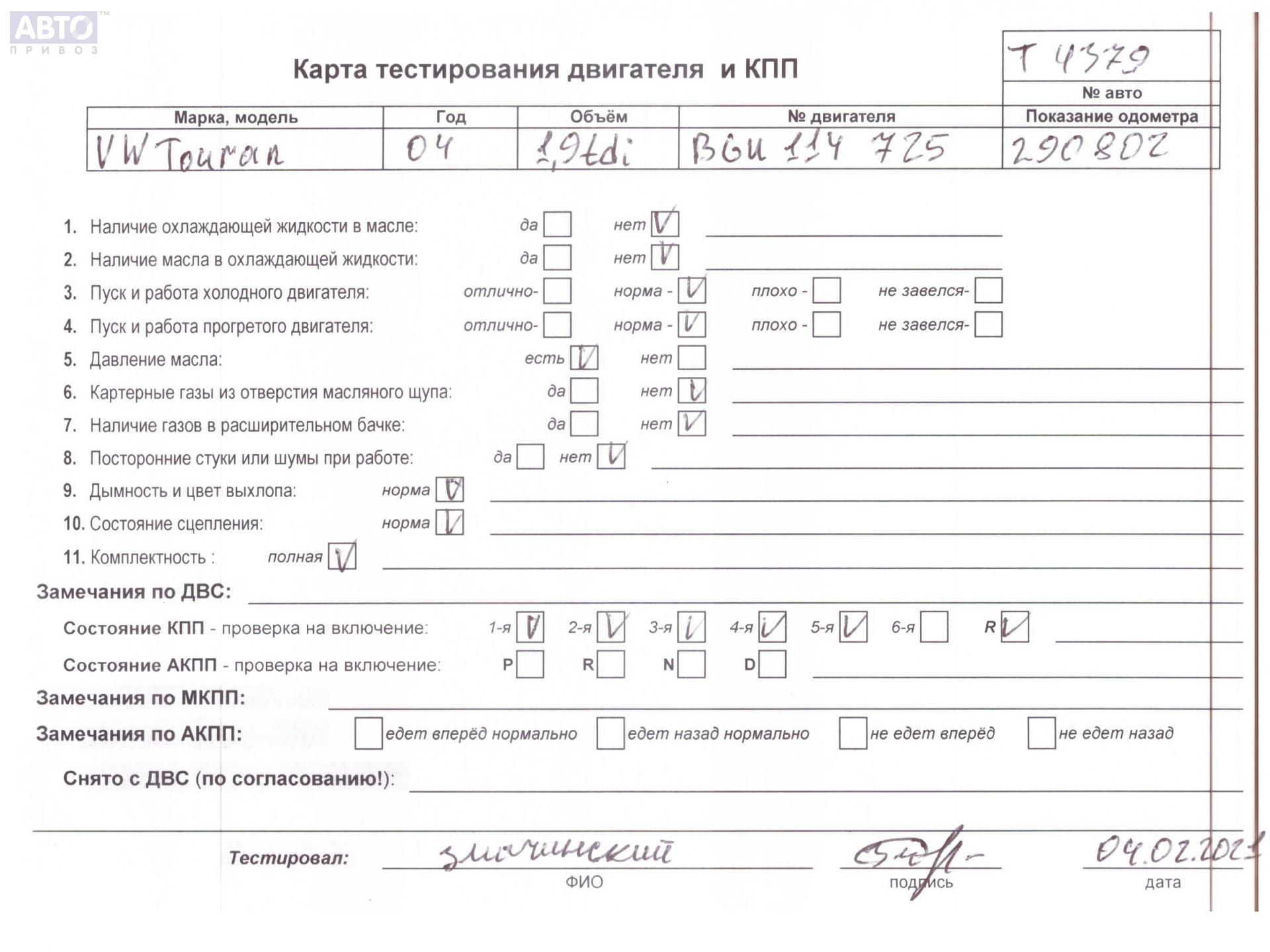 | Марка / Модель / Год: | Volkswagen Touran 2004 |
