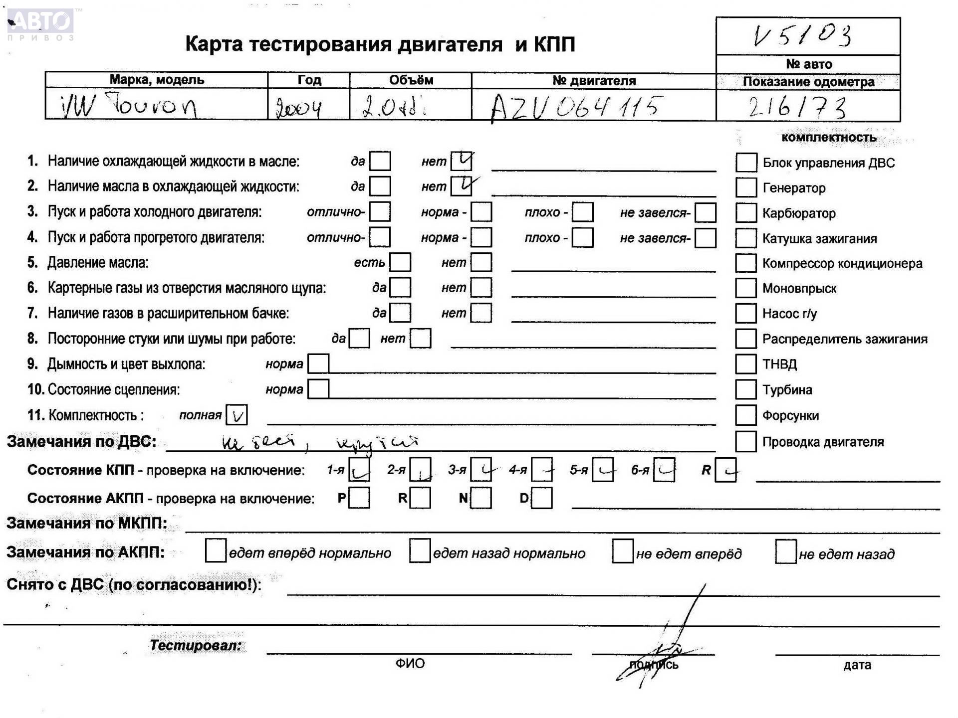 | Автомобиль / VIN: | V5103 WVGZZZ1TZ4W172475 |