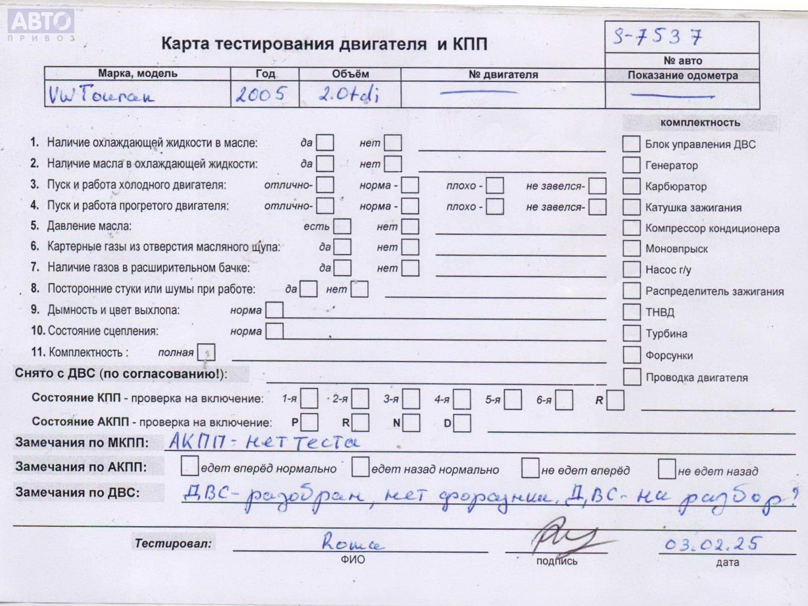 | Марка / Модель / Год: | Volkswagen Touran 2005 |