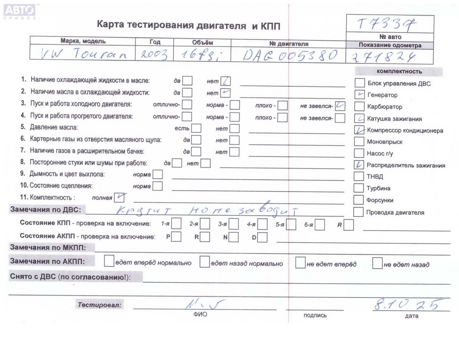 | Автомобиль / VIN: | T7337 WVGZZZ1TZ3W017922 |