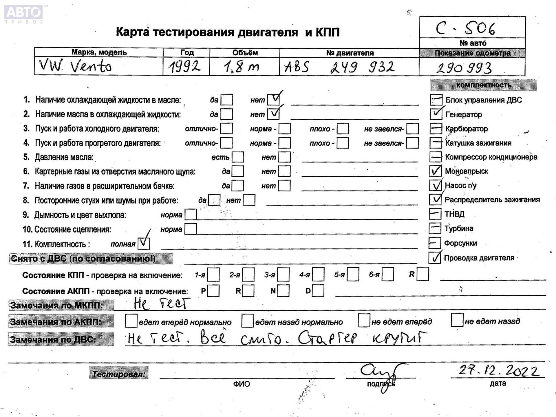 | Марка / Модель / Год: | Volkswagen Vento 1992 |