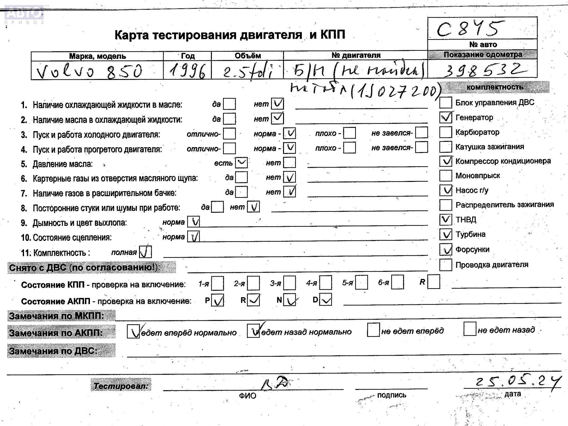 | Марка / Модель / Год: | Volvo 850 1996 |