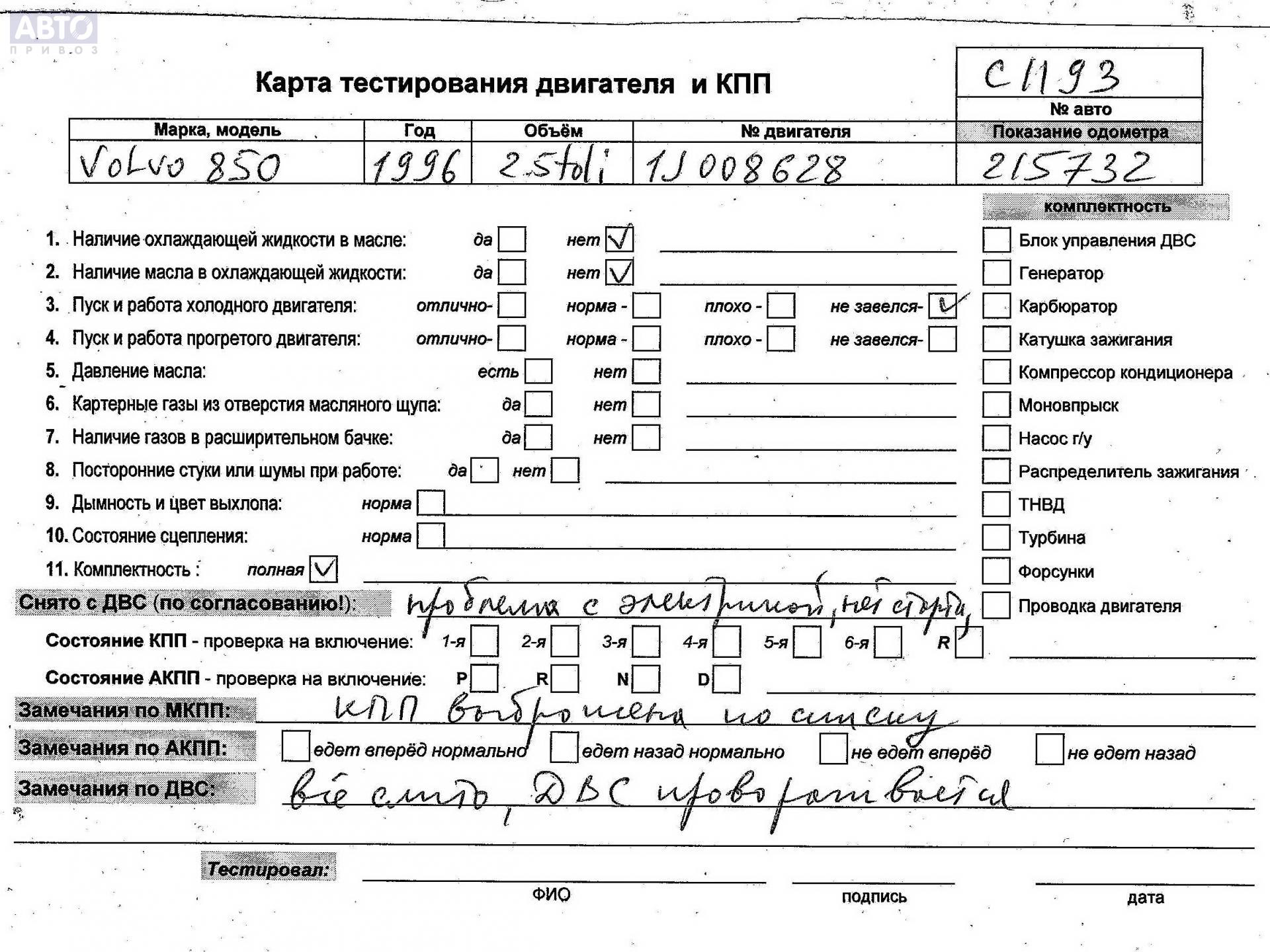 | Марка / Модель / Год: | Volvo 850 1996 |