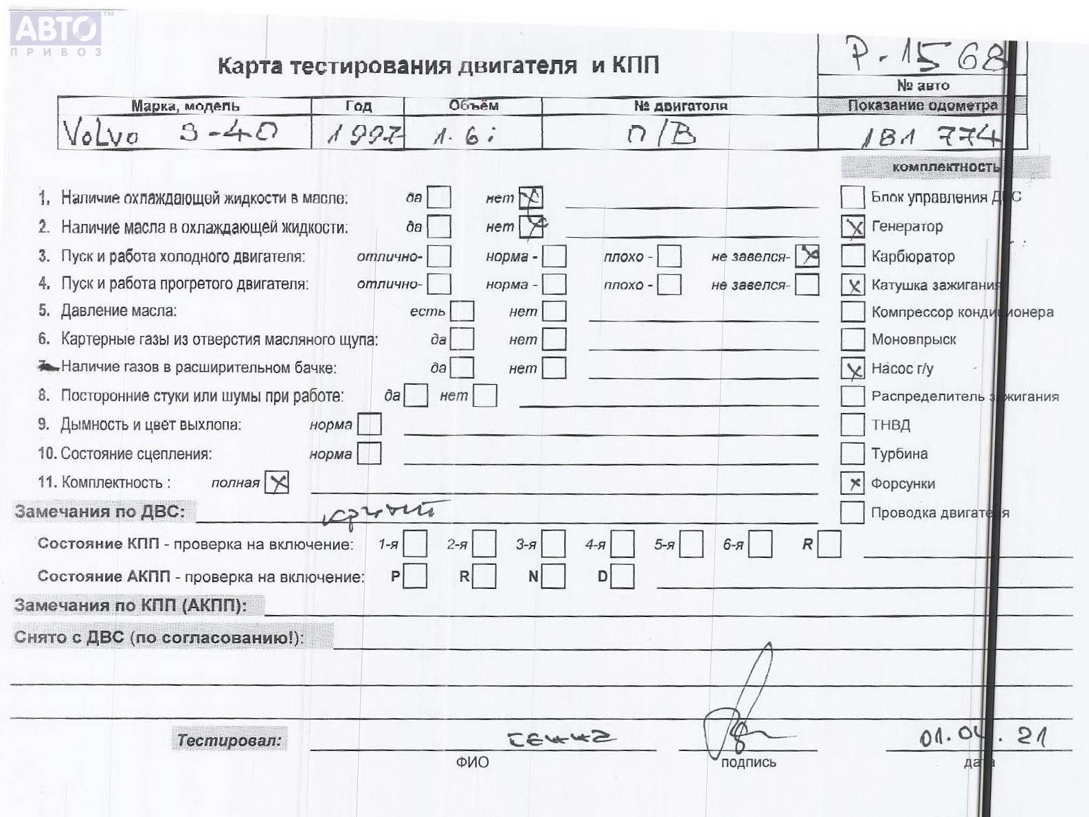 | Автомобиль / VIN: | P1568 YV1VS1123WF201884 |