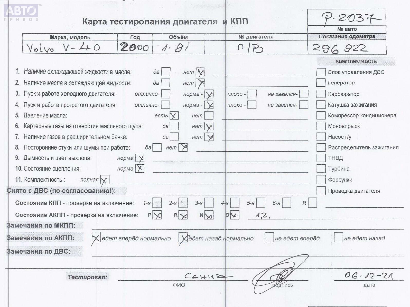 | Автомобиль / VIN: | P2037 YV1VW14K91F654939 |