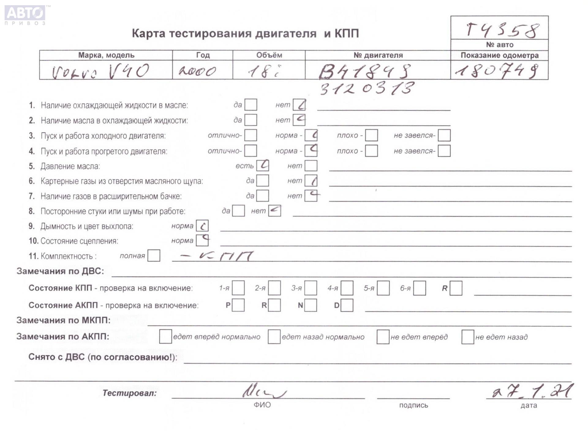 | Автомобиль / VIN: | T4358 YV1VW14K24F045297 |