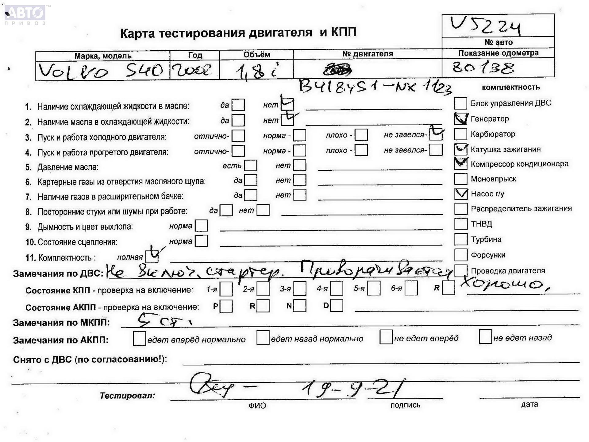 | Автомобиль / VIN: | V5224 YV1VS26753F958040 |