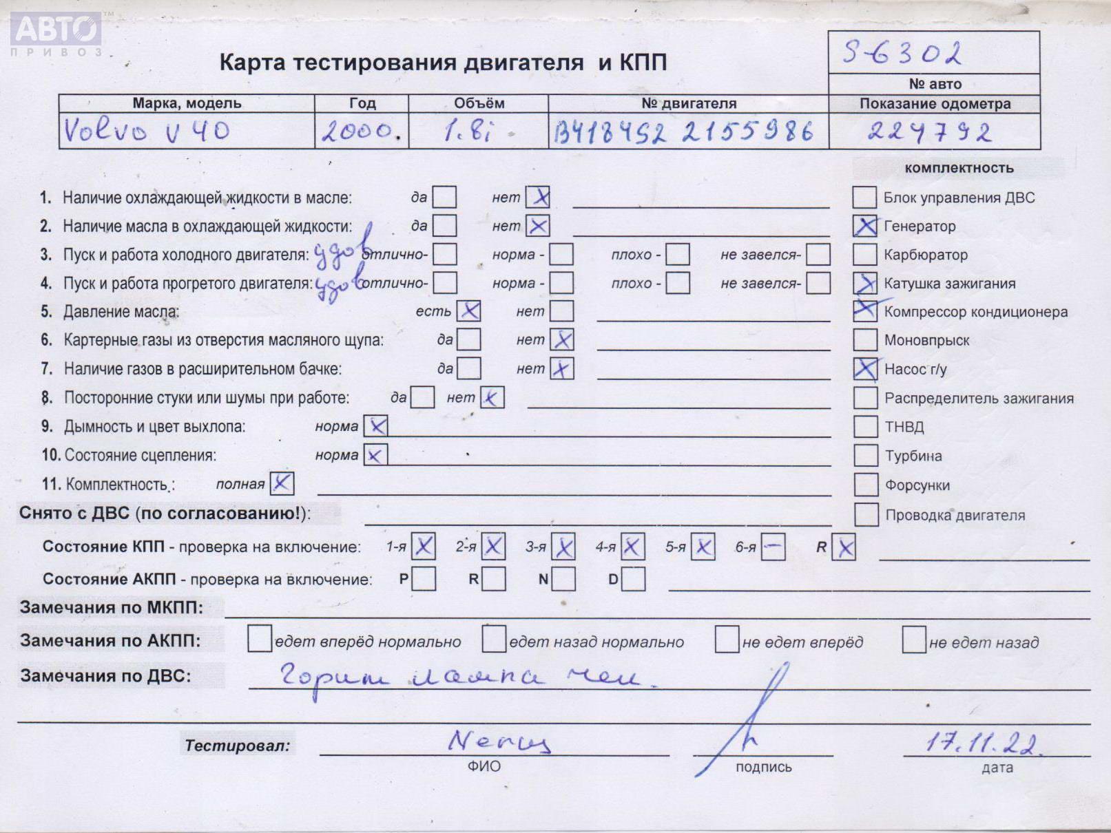 | Автомобиль / VIN: | S6302 YV1VW14K31F615832 |