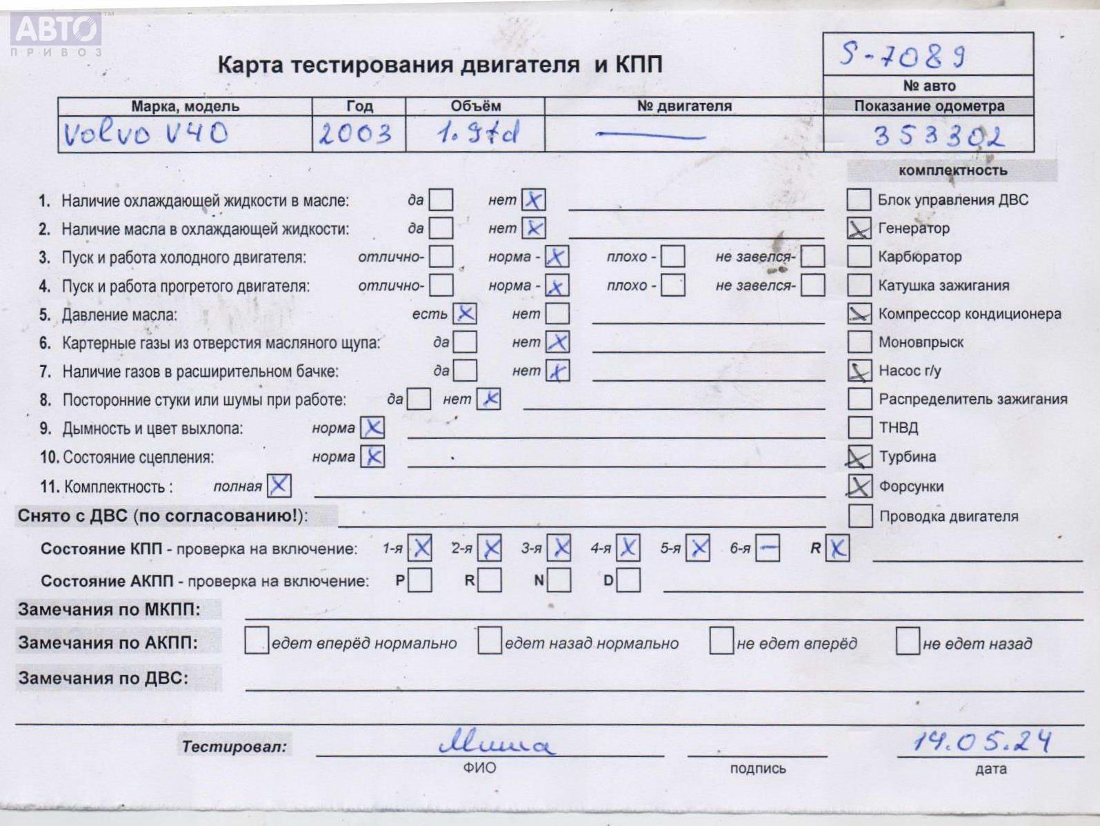 | Автомобиль / VIN: | S7089 YV1VW70924F101323 |