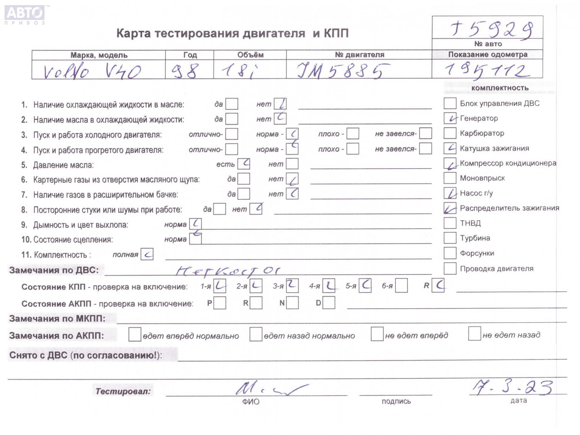 | Марка / Модель / Год: | Volvo S40 / V40 (1995-2004) 1998 |