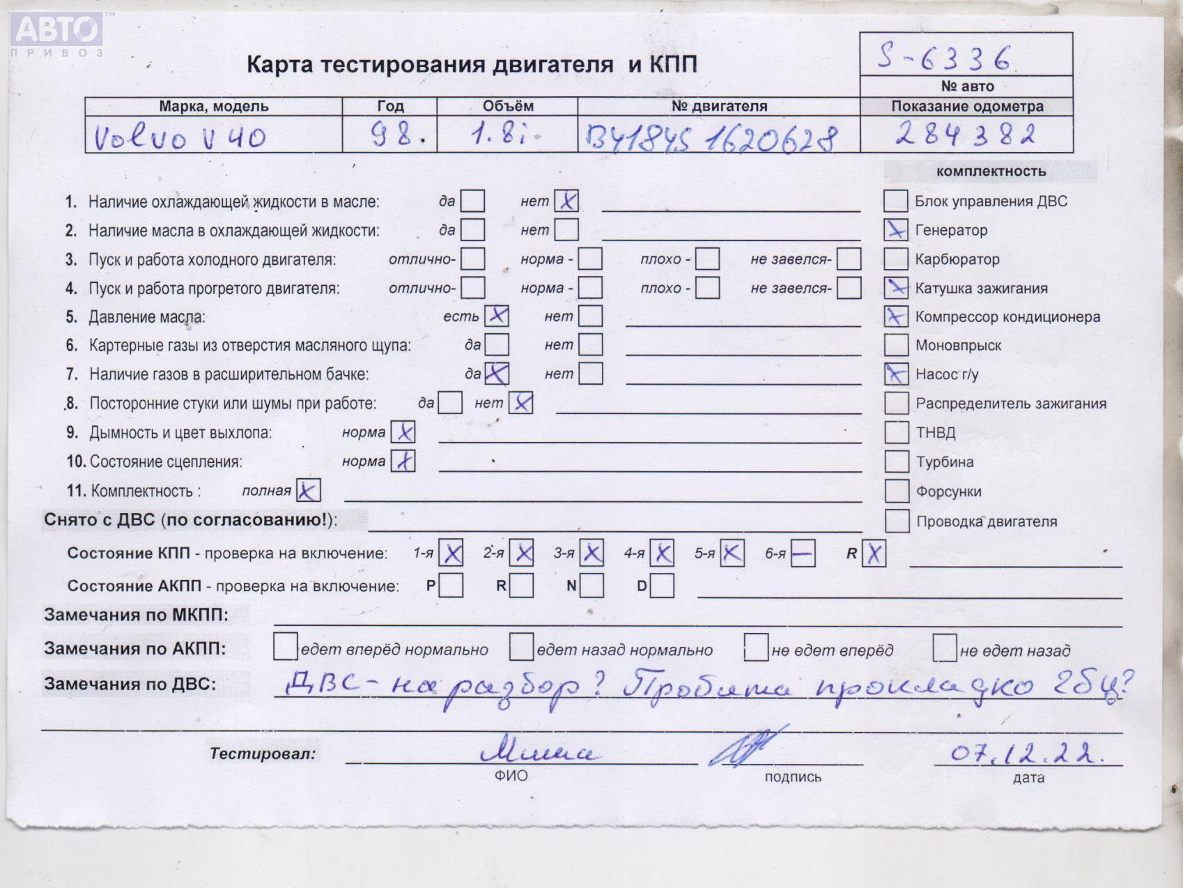 | Автомобиль / VIN: | S6336 YV1VW1223XF350231 |