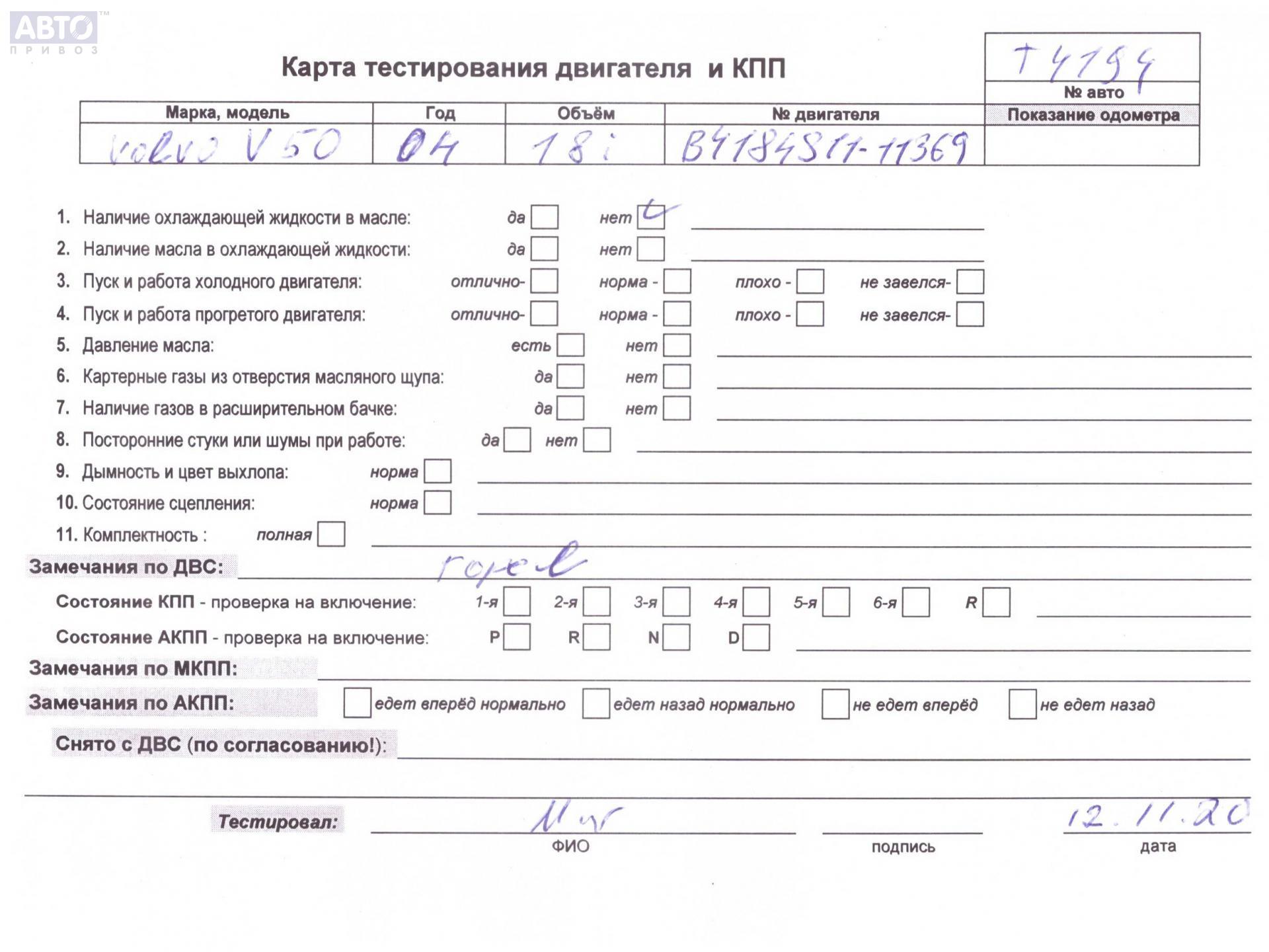 | Автомобиль / VIN: | T4194 YV1MW214252088943 |