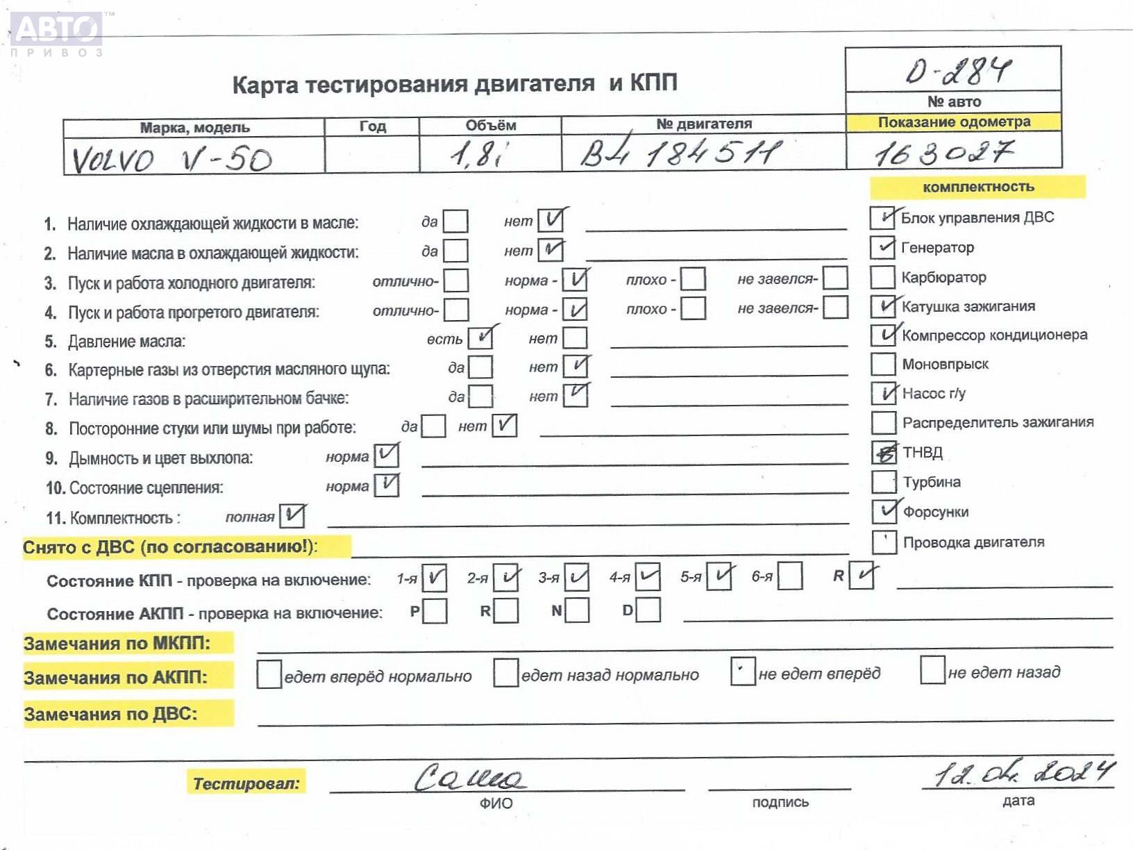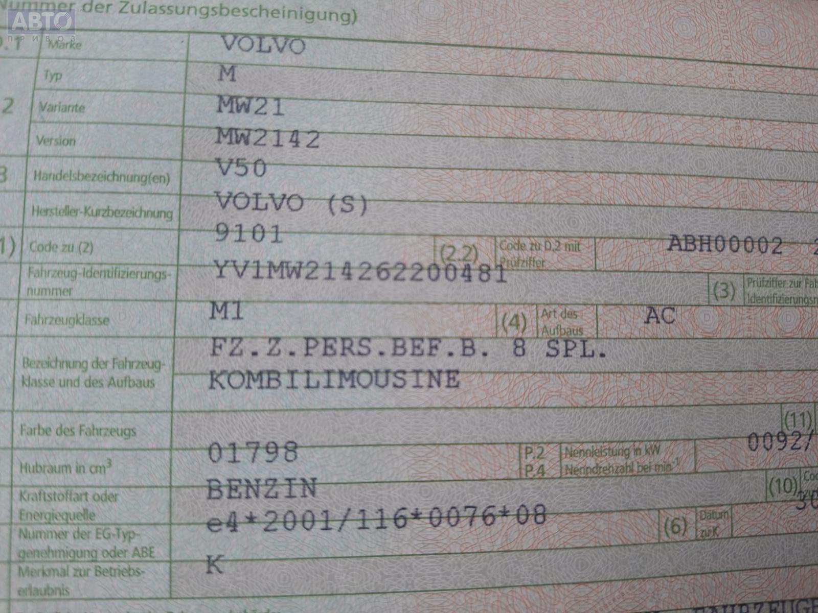 | Автомобиль / VIN: | D0284 YV1MW214262200481 |