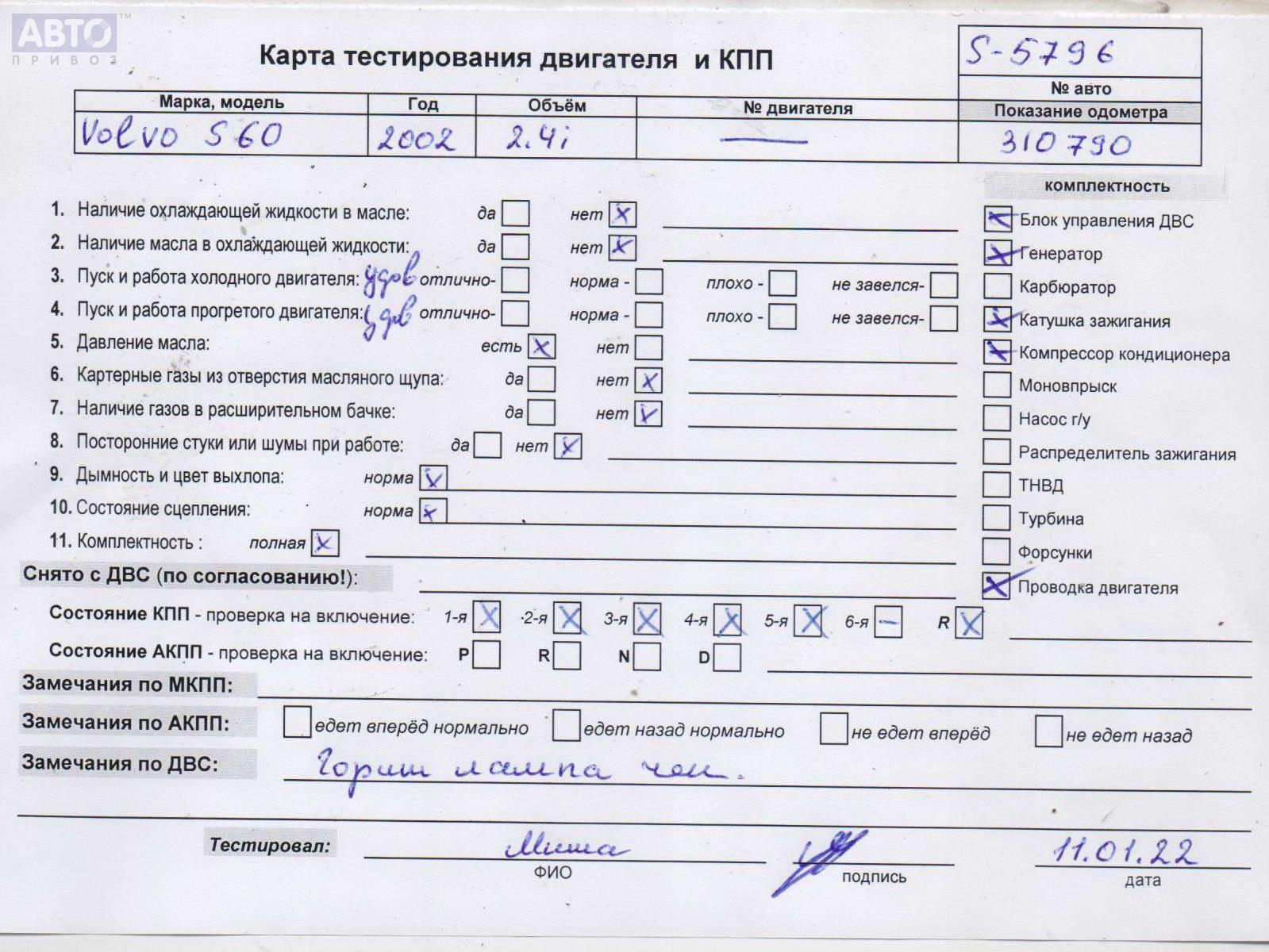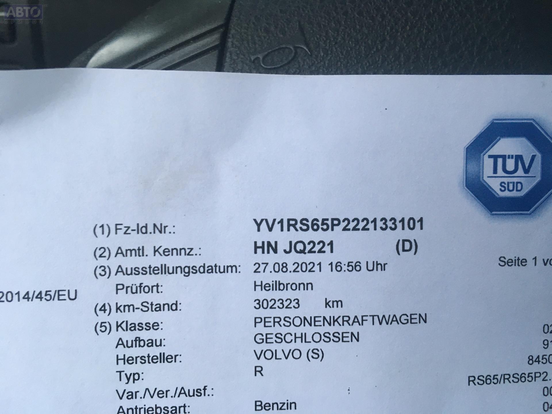 | Автомобиль / VIN: | S5796 YV1RS65P222133101 |