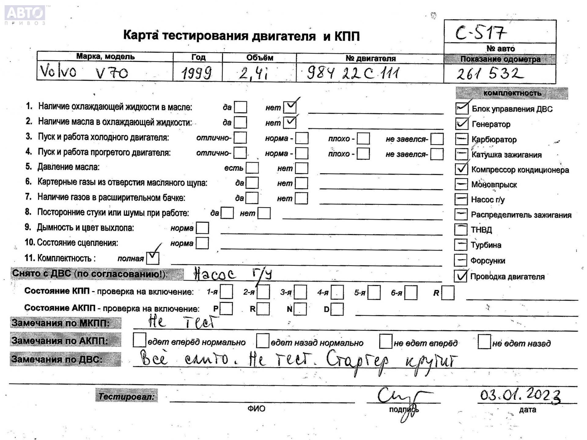 | Автомобиль / VIN: | C0517 YV1GW32F9Y2738457 |