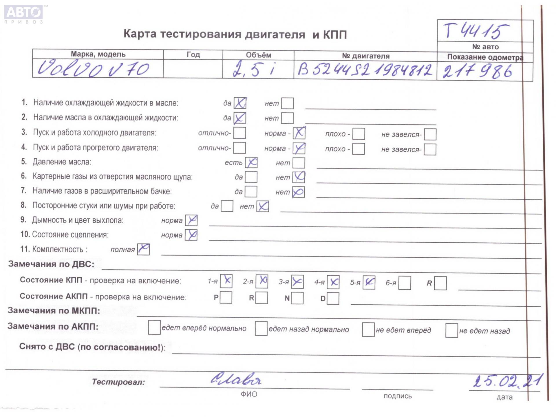 | Автомобиль / VIN: | T4415 YV1LW65F2Y2705312 |