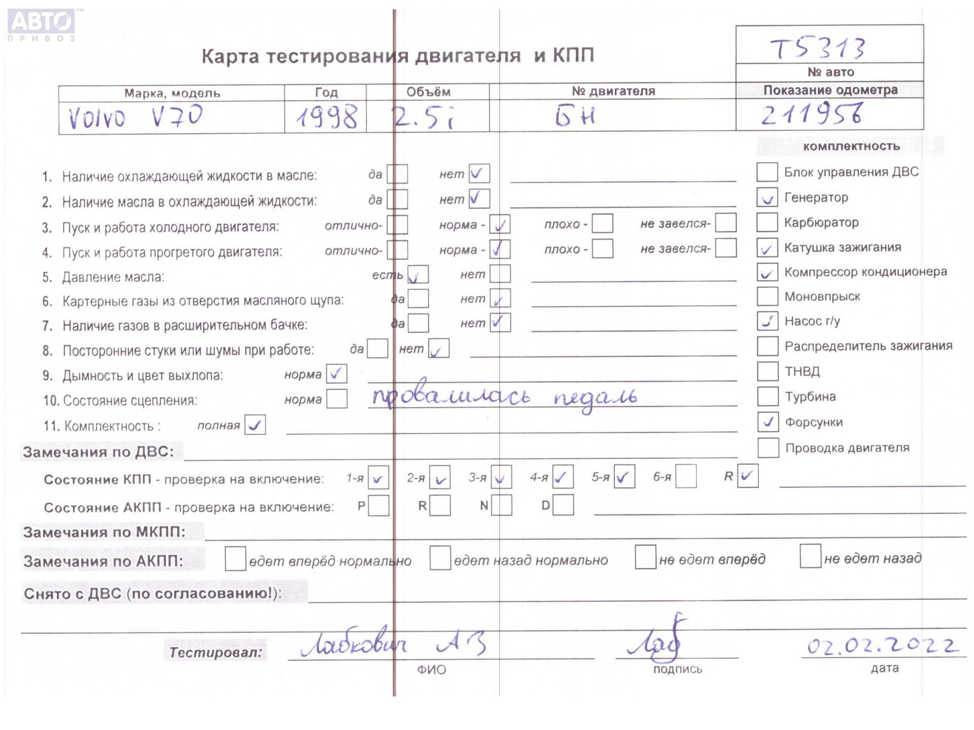 | Автомобиль / VIN: | T5313 YV1LW5102X2589646 |