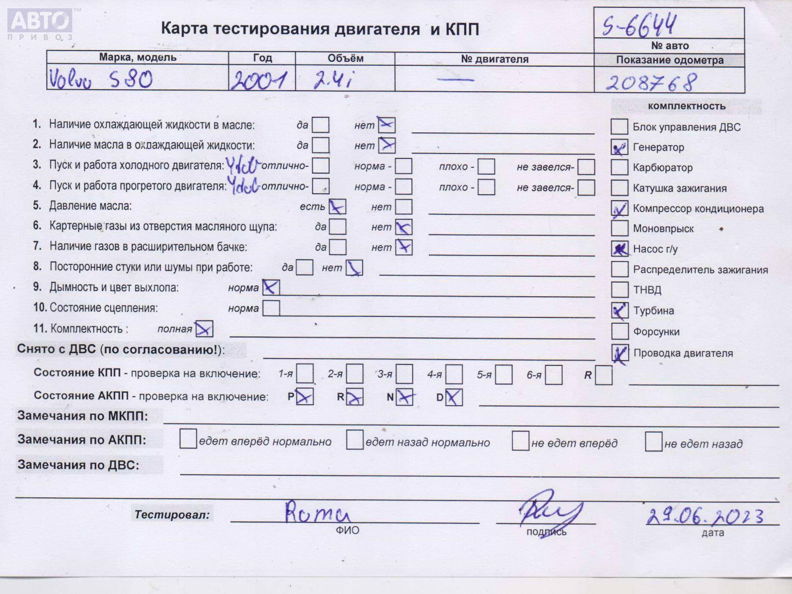 | Марка / Модель / Год: | Volvo S80 2001 |