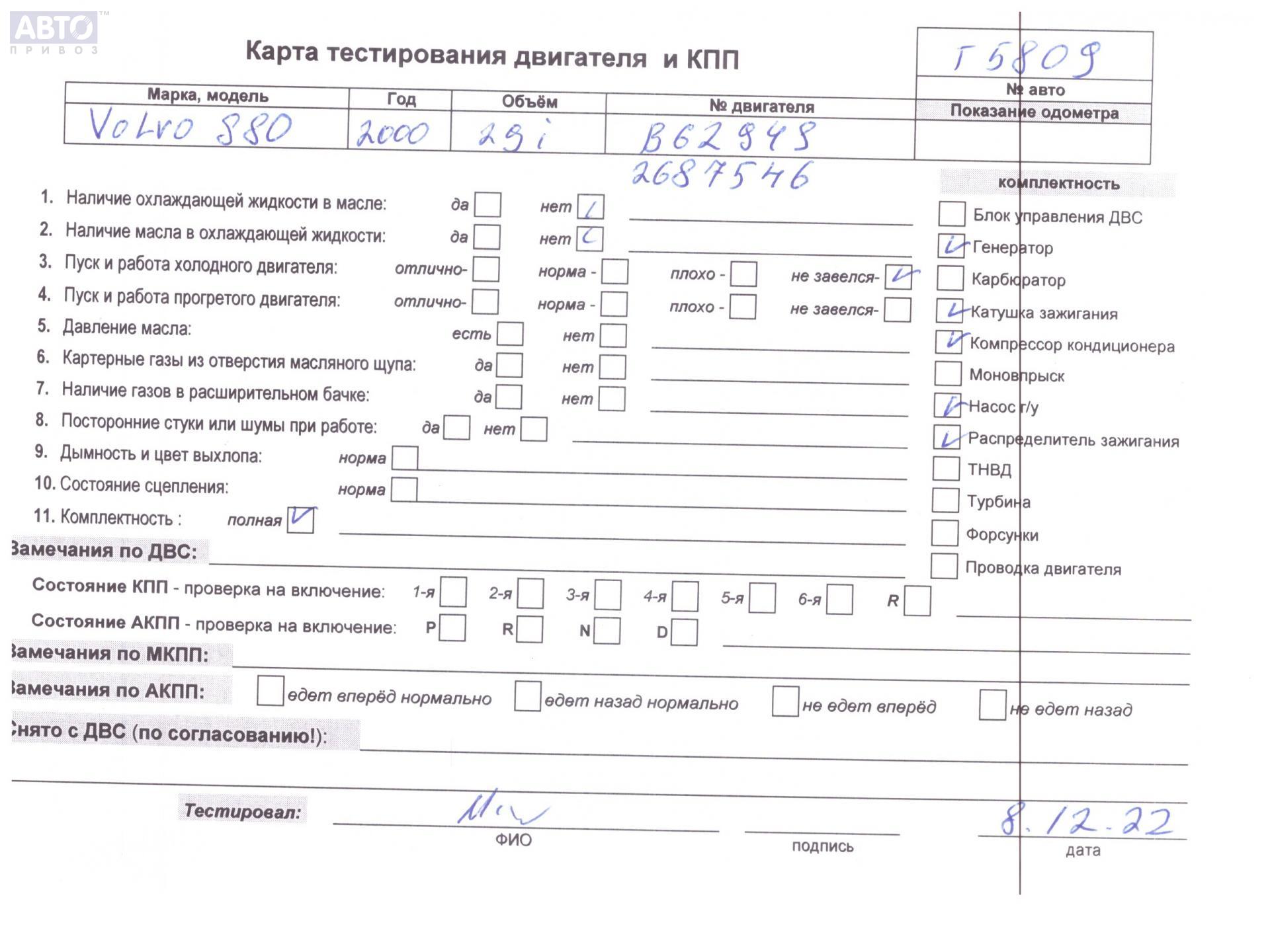| Автомобиль / VIN: | T5809 YV1TS92K521255838 |