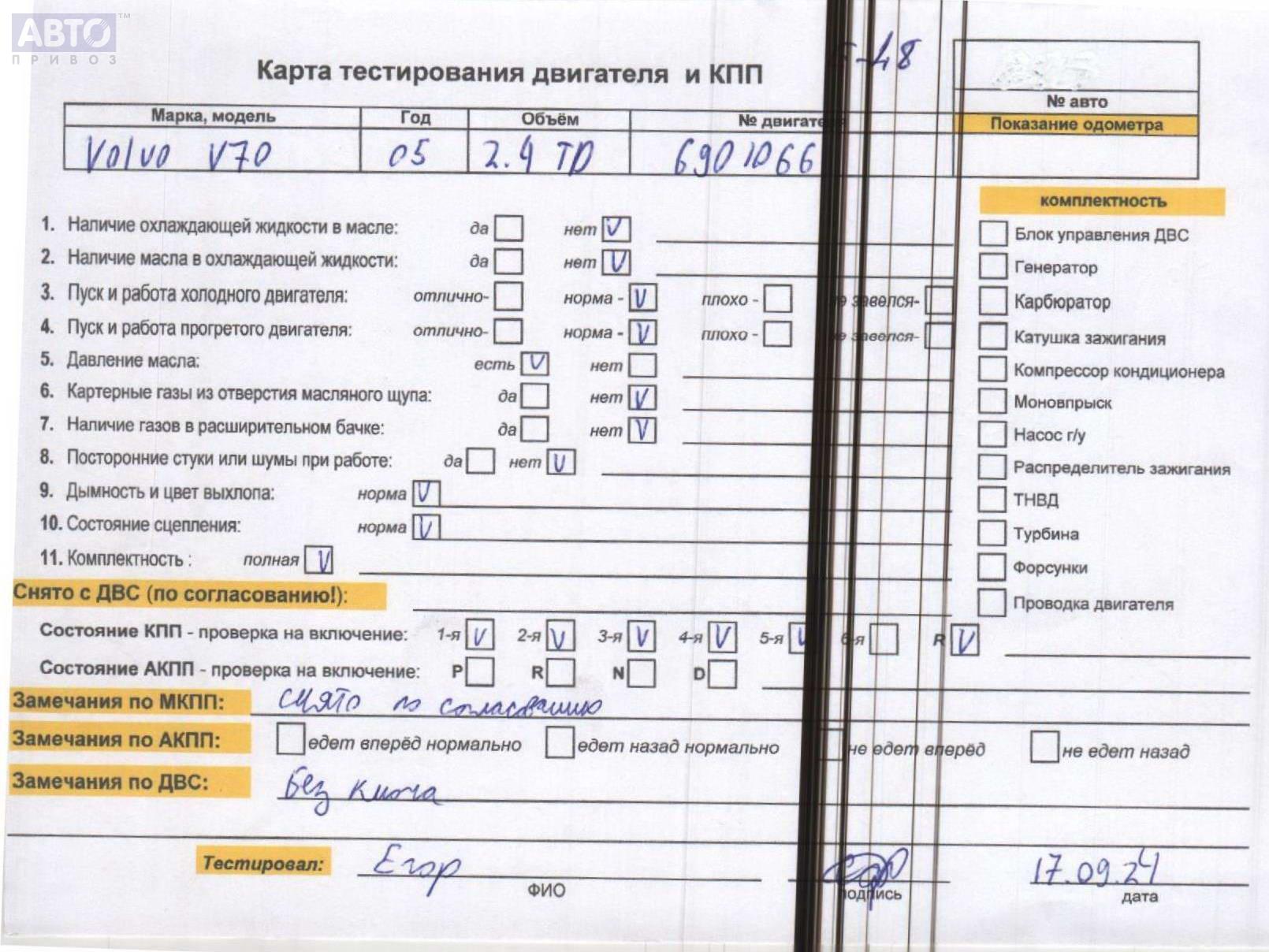| Марка / Модель / Год: | Volvo V70 (2000-2007) 2004 |