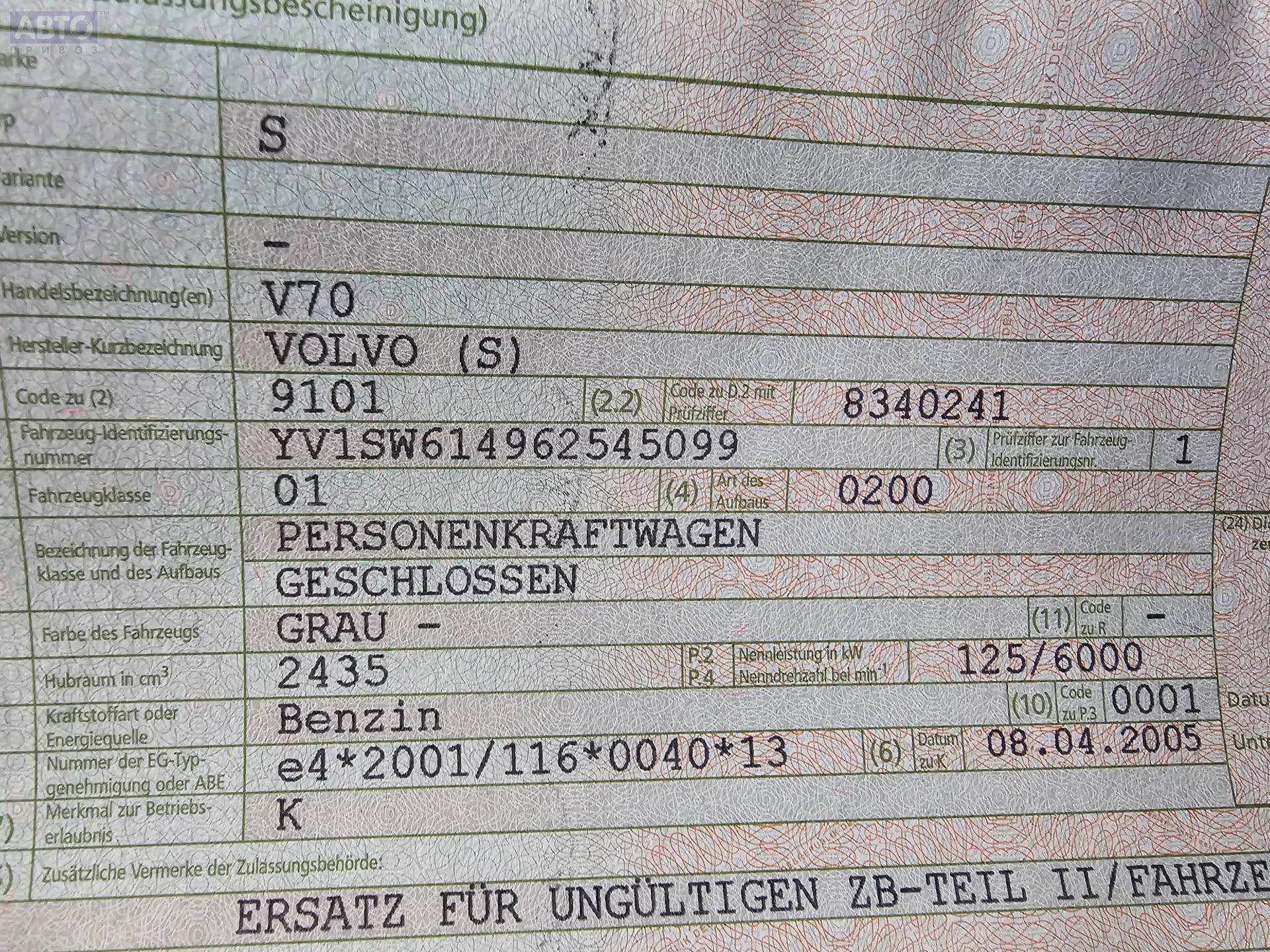 | Марка / Модель / Год: | Volvo V70 (2000-2007) 2006 |